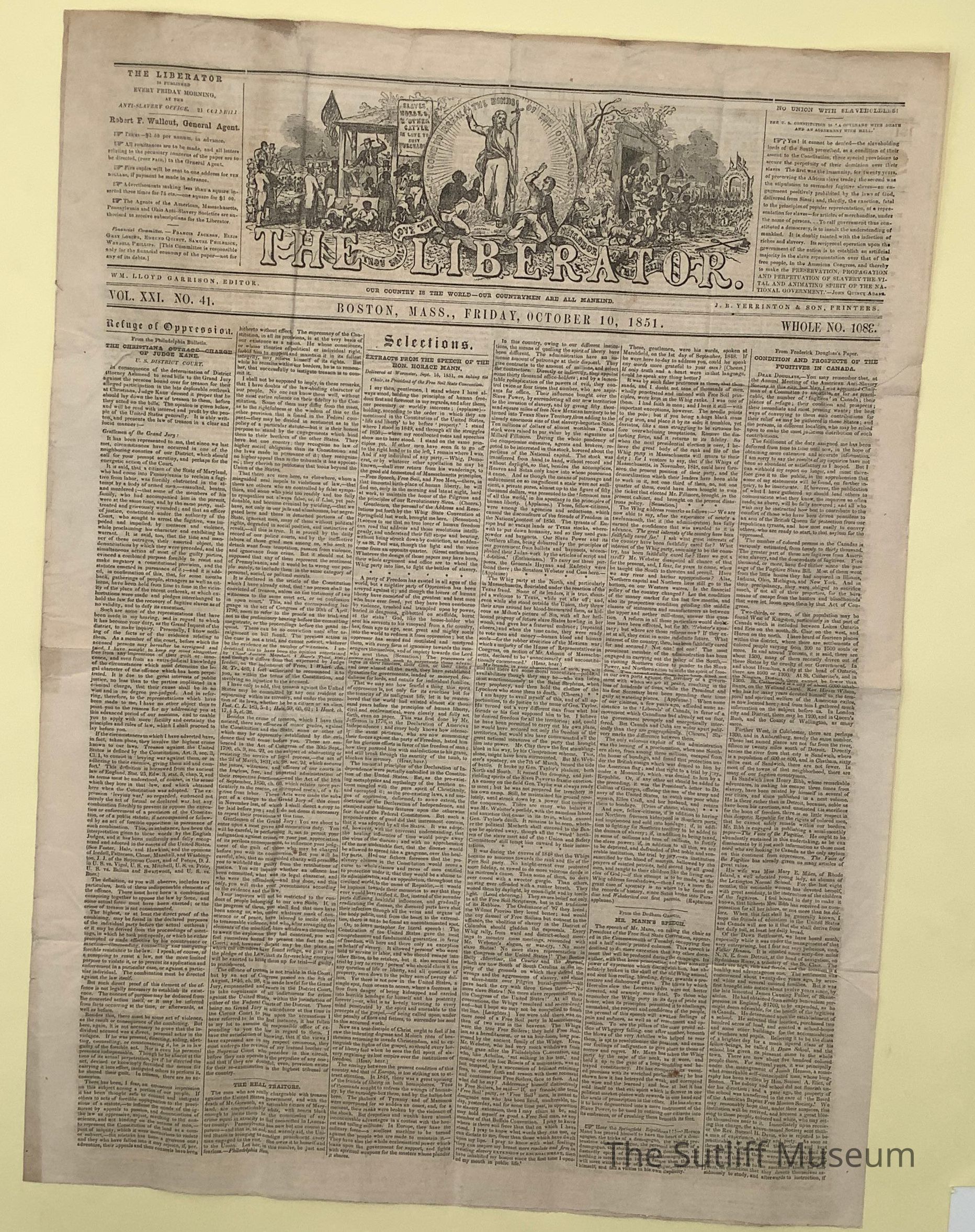 The Liberator newspaper published on October 10, 1851.Collection
