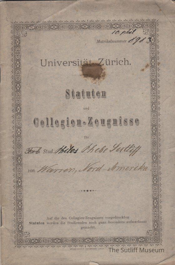 Education, Organizations & Clubs, Schools, Social & Personal Activity, University of Zurich, Phebe Sutliff, Report Card, Student Handbook