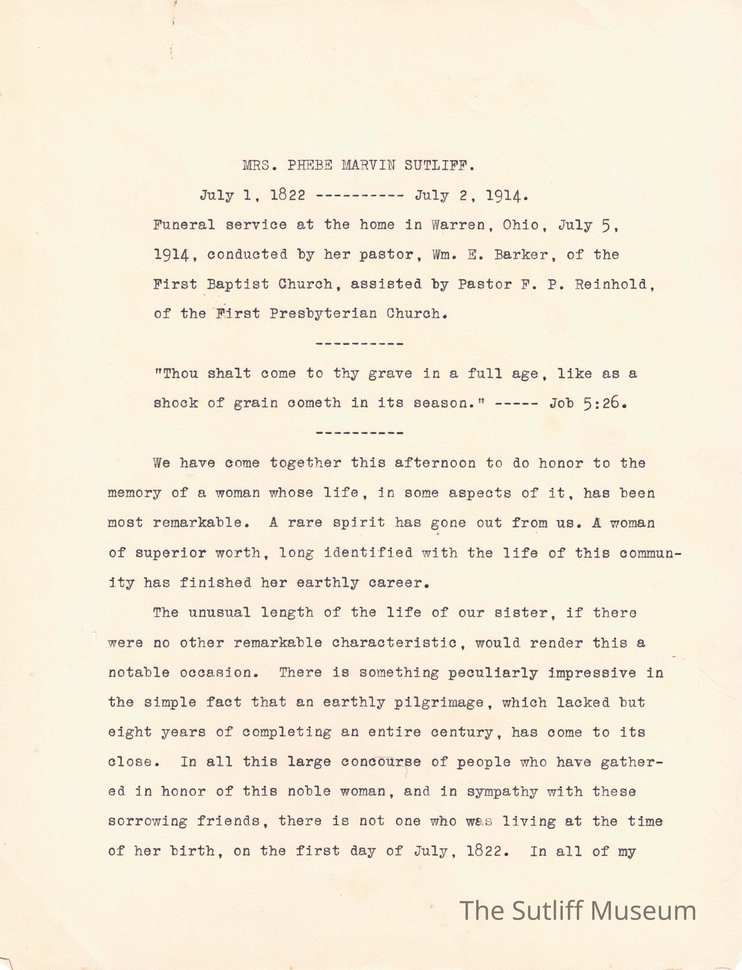 Phebe Marvin Sutliff Funeral ServiceEntry/Object ID