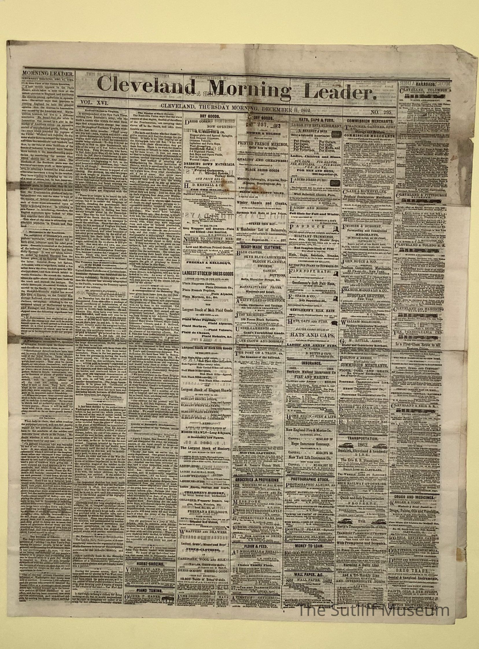 The Cleveland Morning Leader 12/11/1862Entry/Object ID