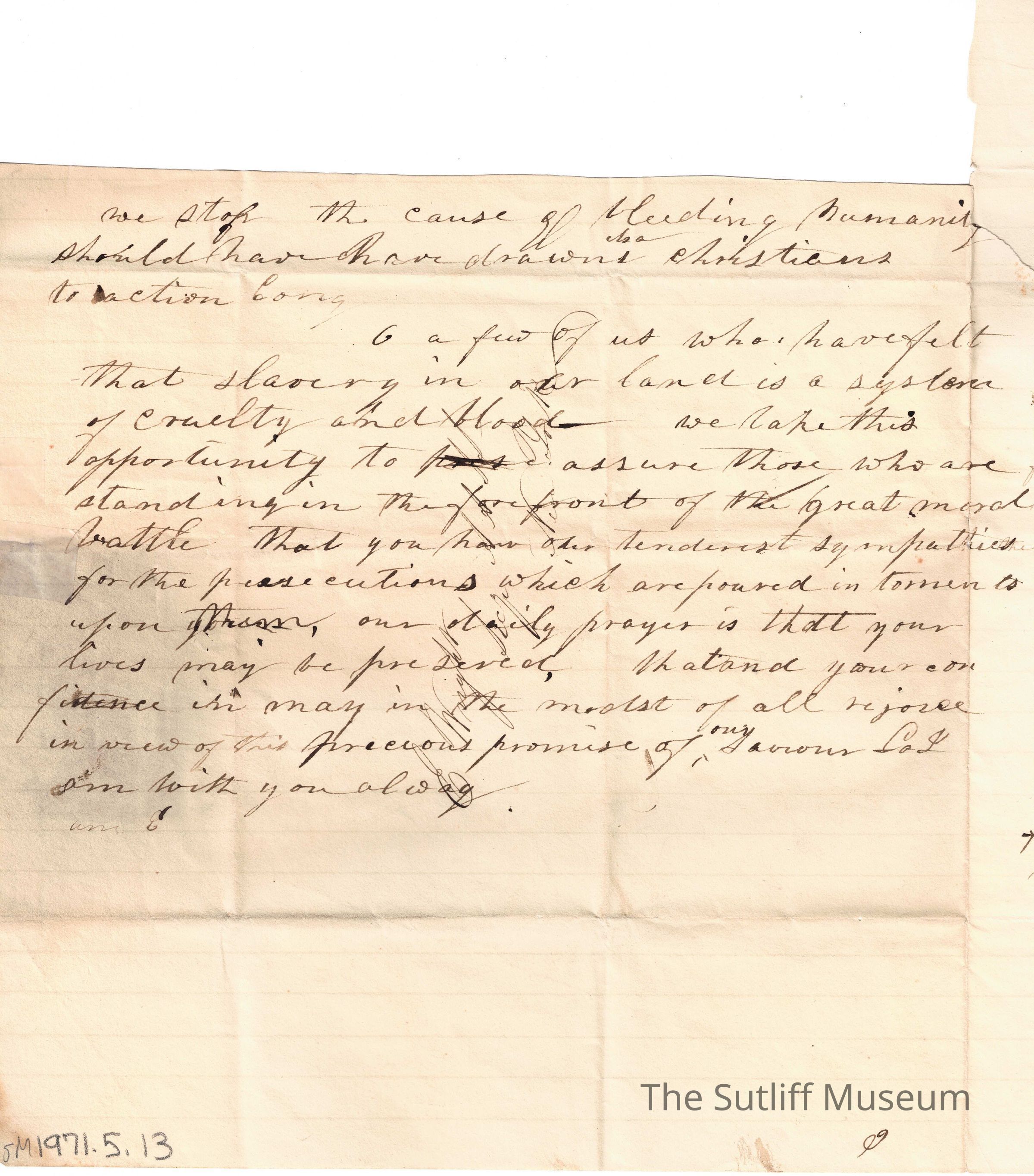 A letter from Mary Plumb Sutliff to E. Wright regarding her concerns about slavery.Collection