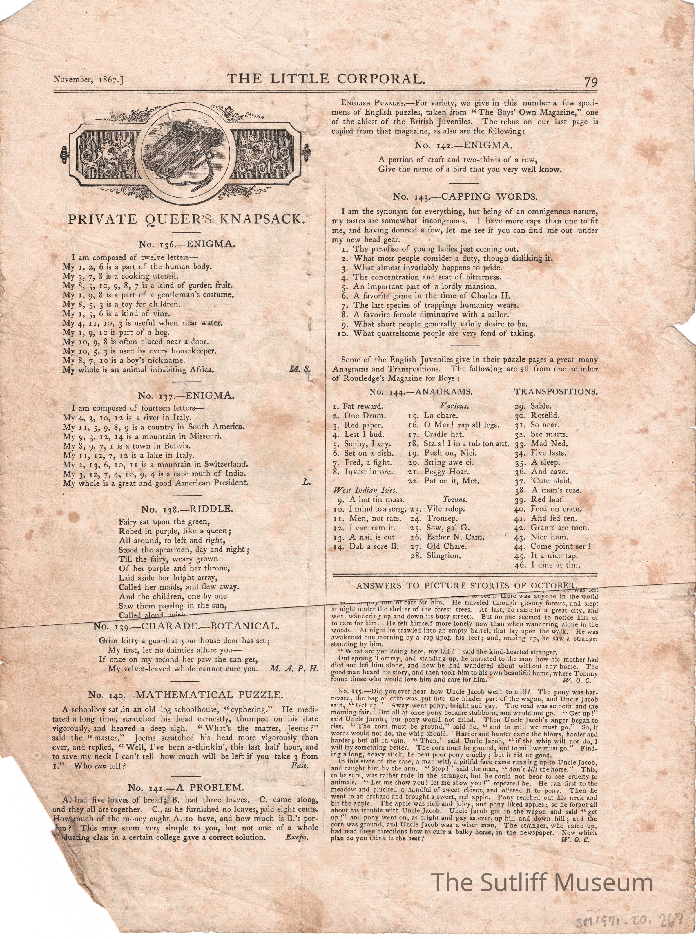 Page 79 and 80 from "The Little Corporal" dated November, 1867.Collection