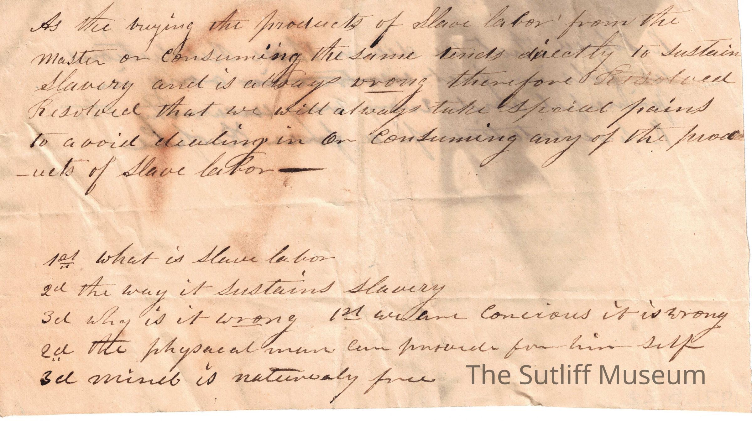 A document stating the issues with purchasing products of slave labor and how it is sustains slavery.Collection