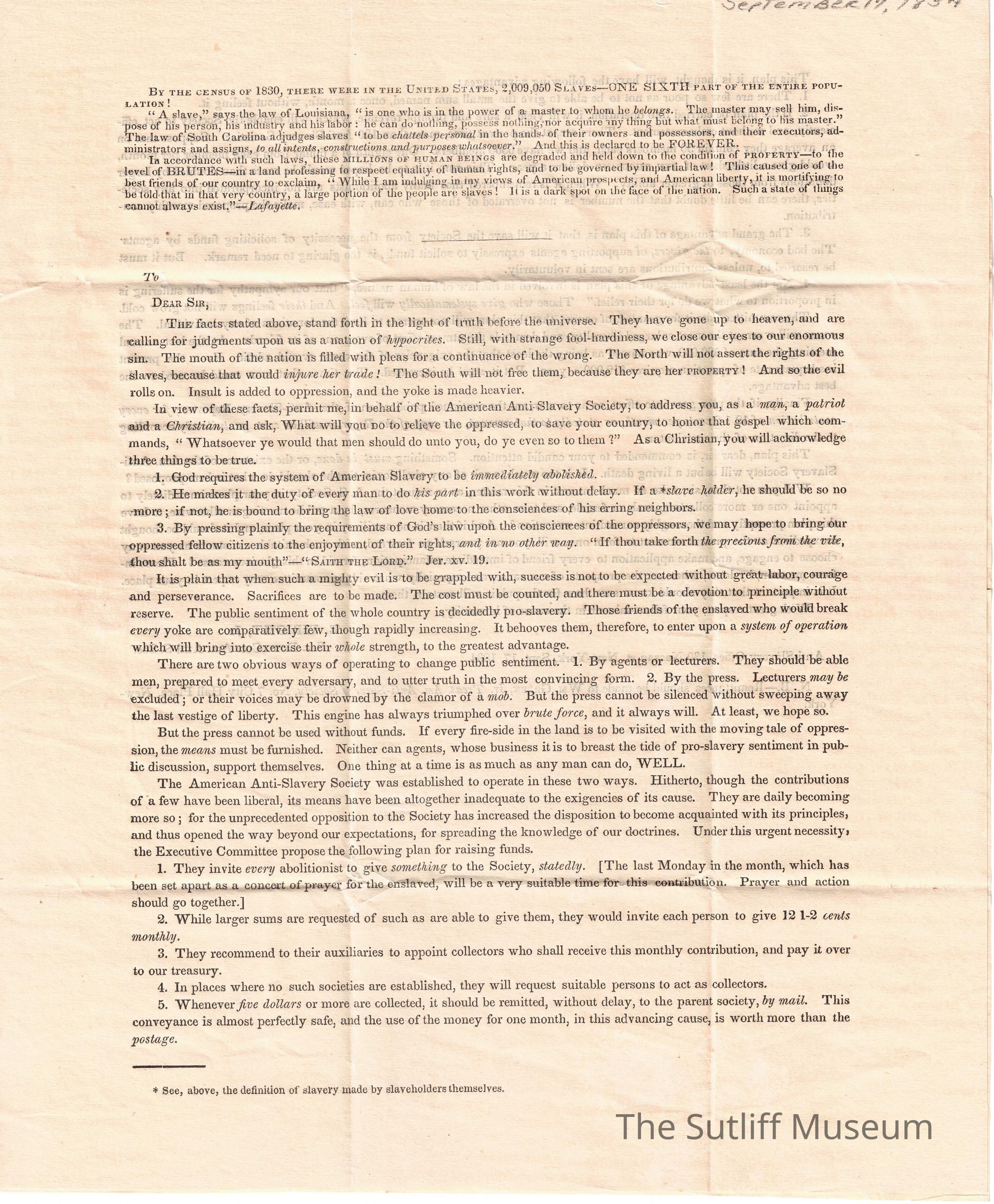 To the Secretary of the Anti-Slavery Society of VernonEntry/Object ID