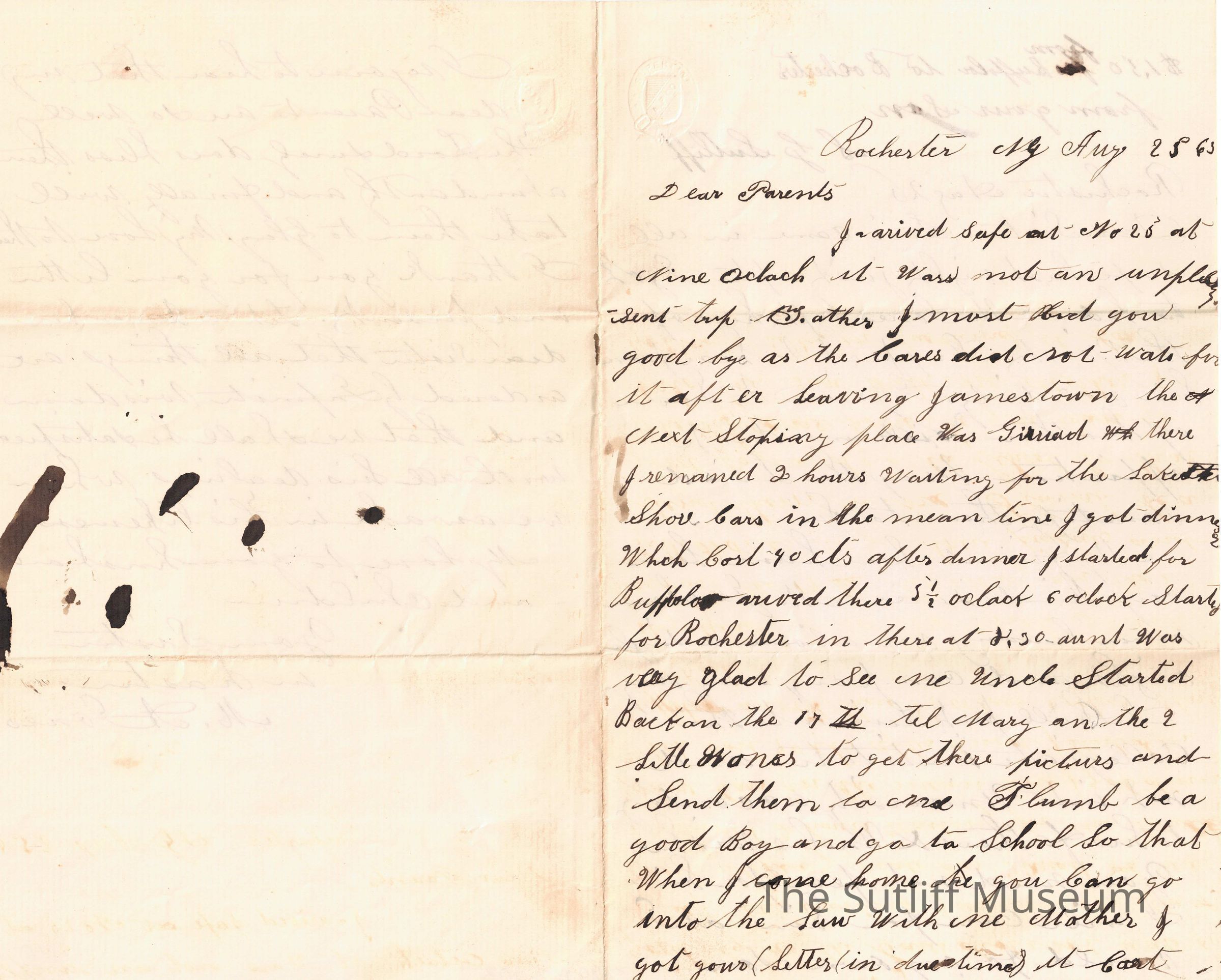 A letter from L.G. Sutliff to his parents regarding his safe arrival in New York.