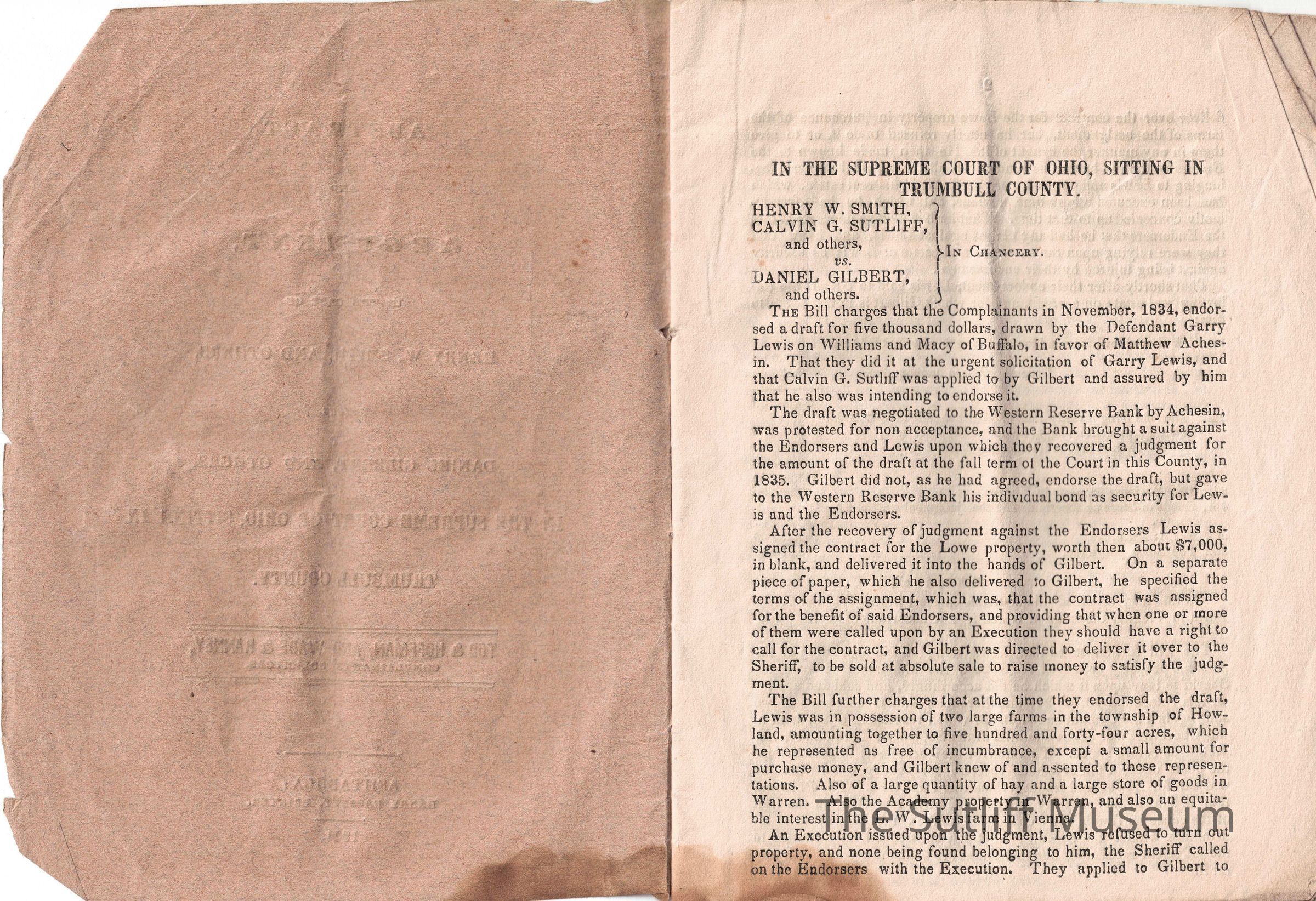A document explaining the case of Henry W. Smith and Calvin G. Sutliff vs. Daniel GilbertCollection
