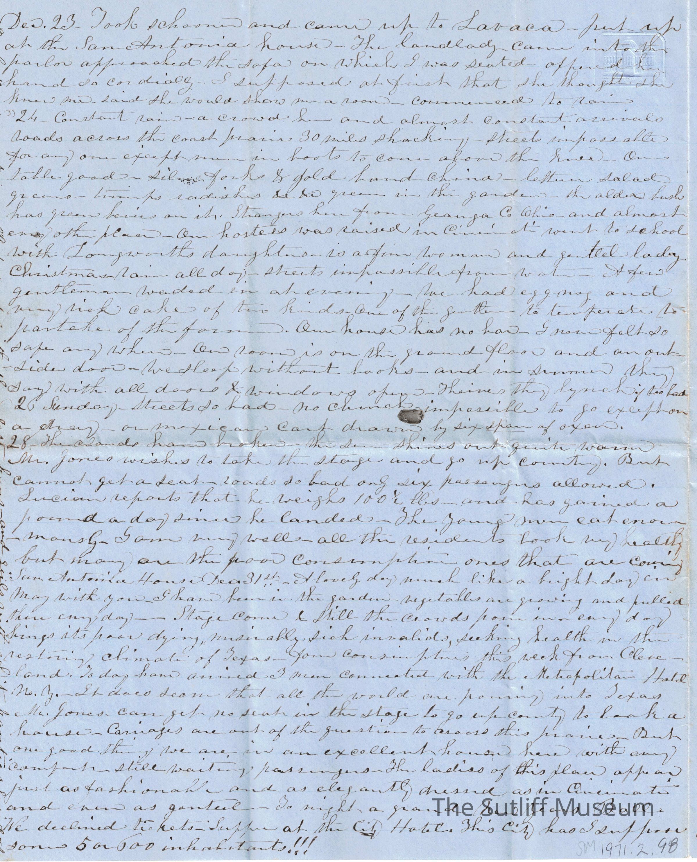 A letter from M.A. Jones to Levi Sutliff regarding an account of his travels and business ventures.Collection