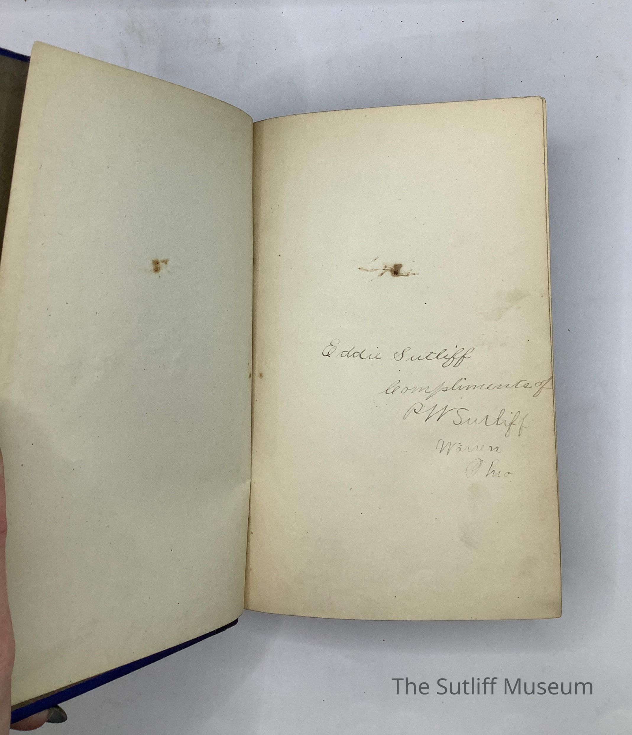 418 pages with illustrations within blue hardbound book with gold embossed title and author's name on spine and image of steamship in center of front cover.7.5 inches high X 5.25 inches wideCollection