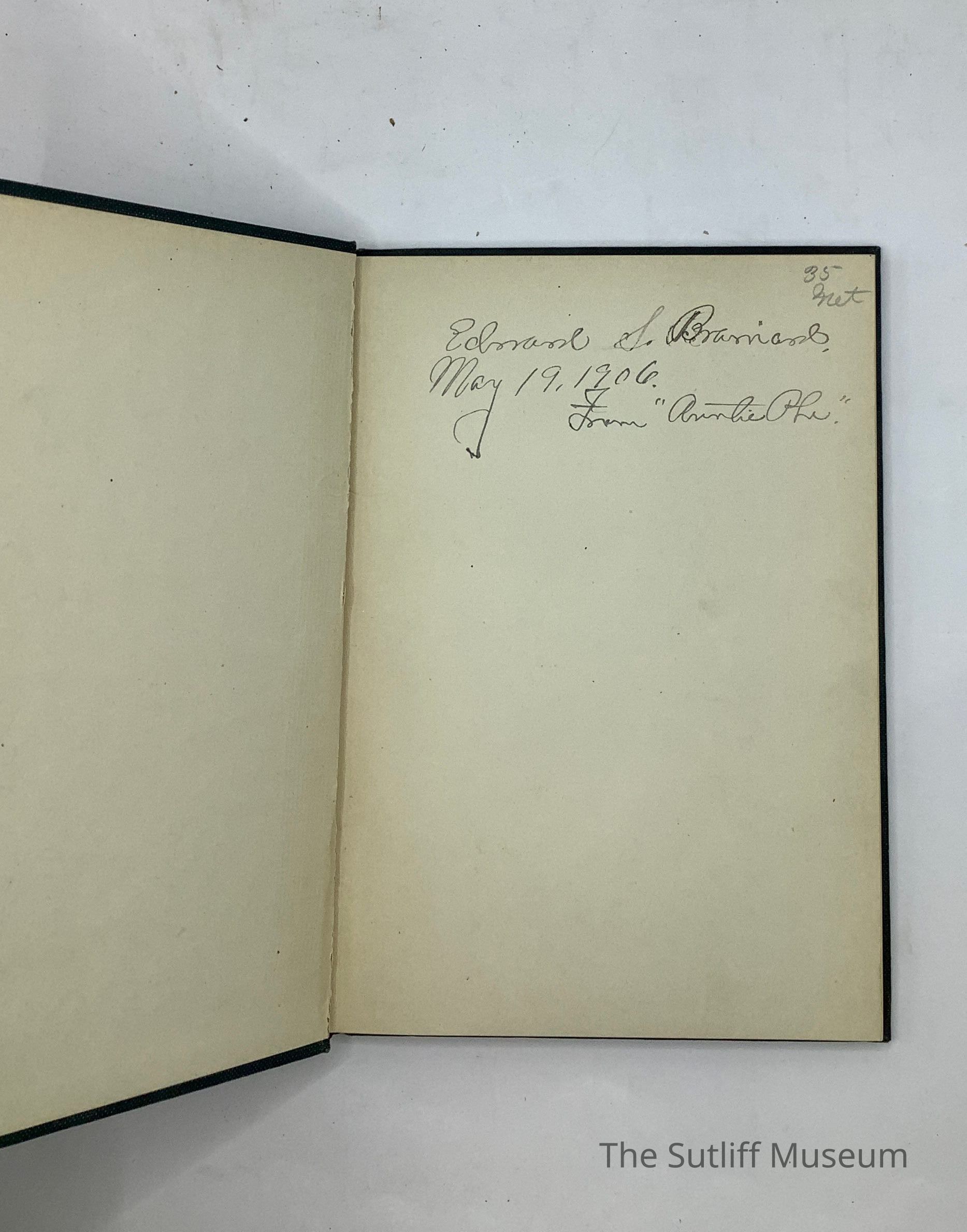 102 pages, illustrated. Small green cloth hardbound copy with black embossed title and author's name on front and white embossed border and image on front cover. Handwritten inscription on frontspiece " Edward S. Brainard, may 19, 1906 From 'Auntie Phe.'"