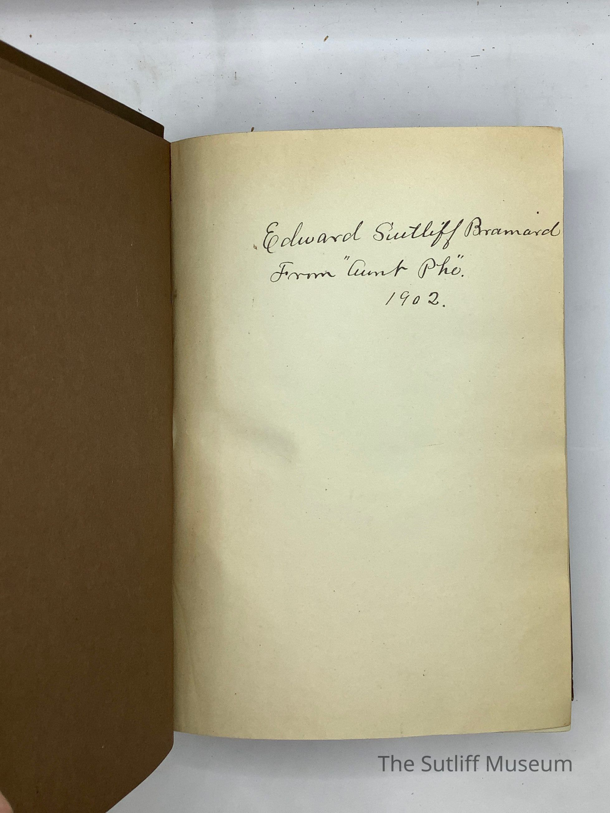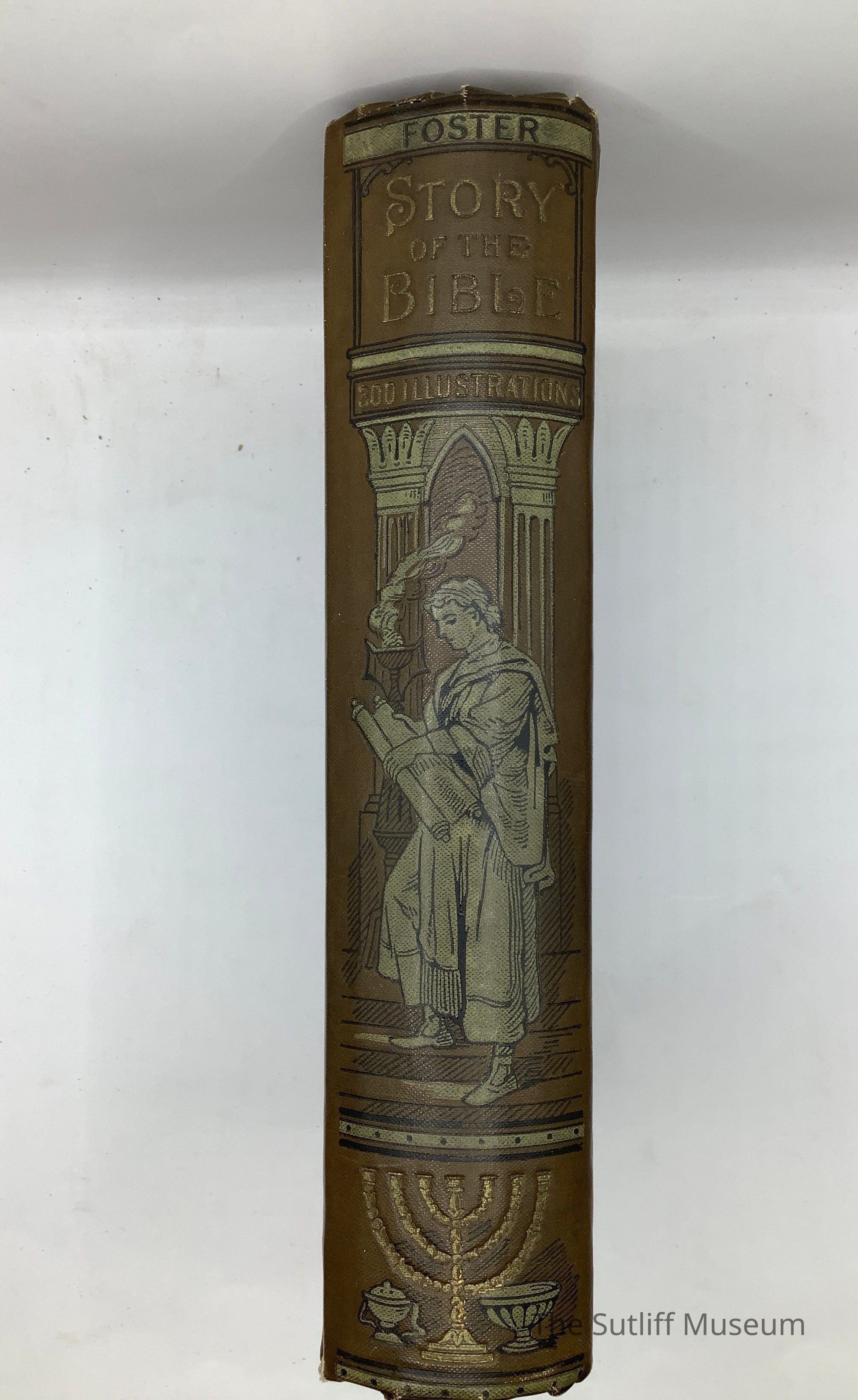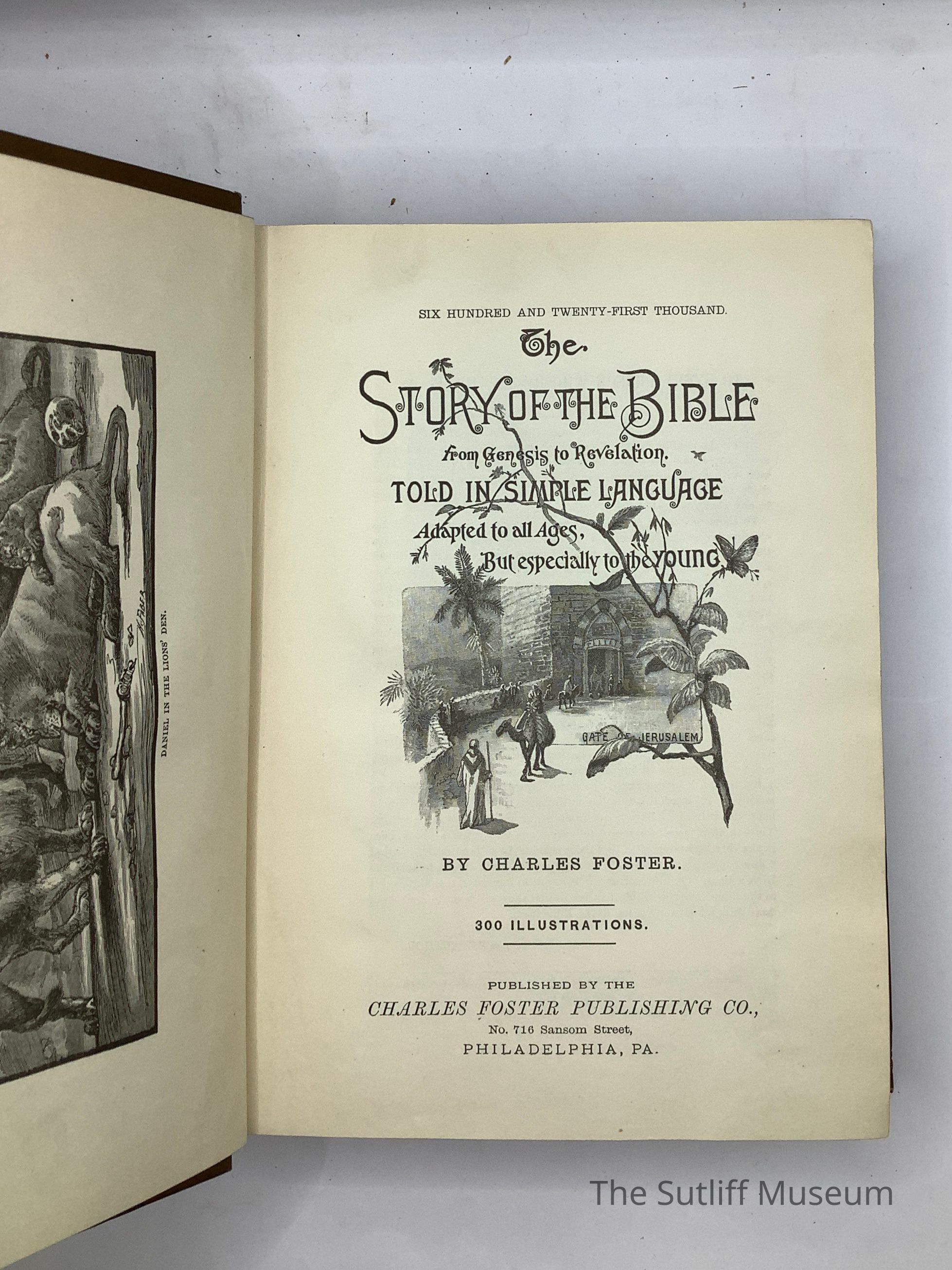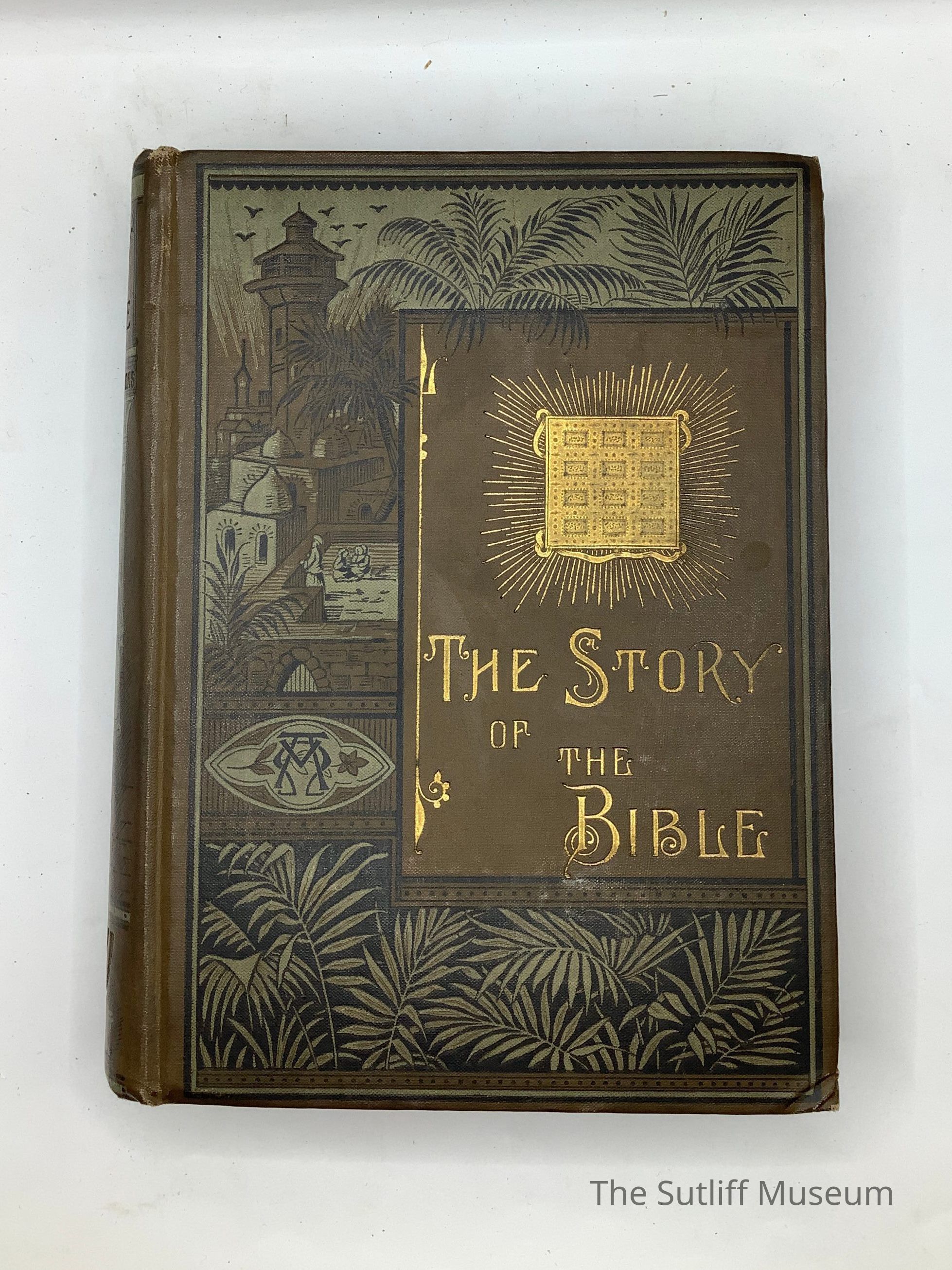 Hardcover copy of "The Story of the Bible" Handwritten inscription on frontspiece reads "Edward Sutliff Brainard From Aunt Phe 1902."