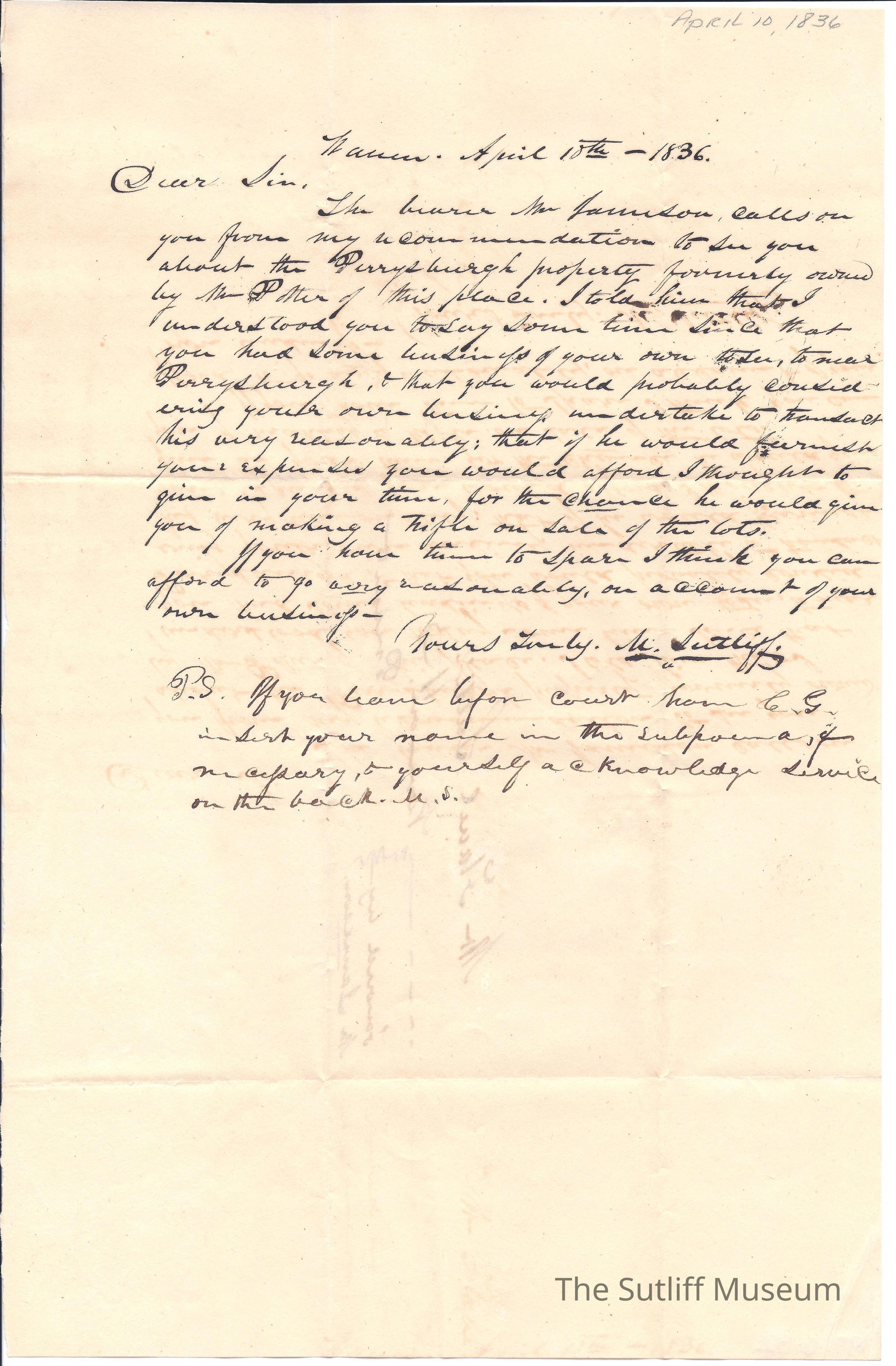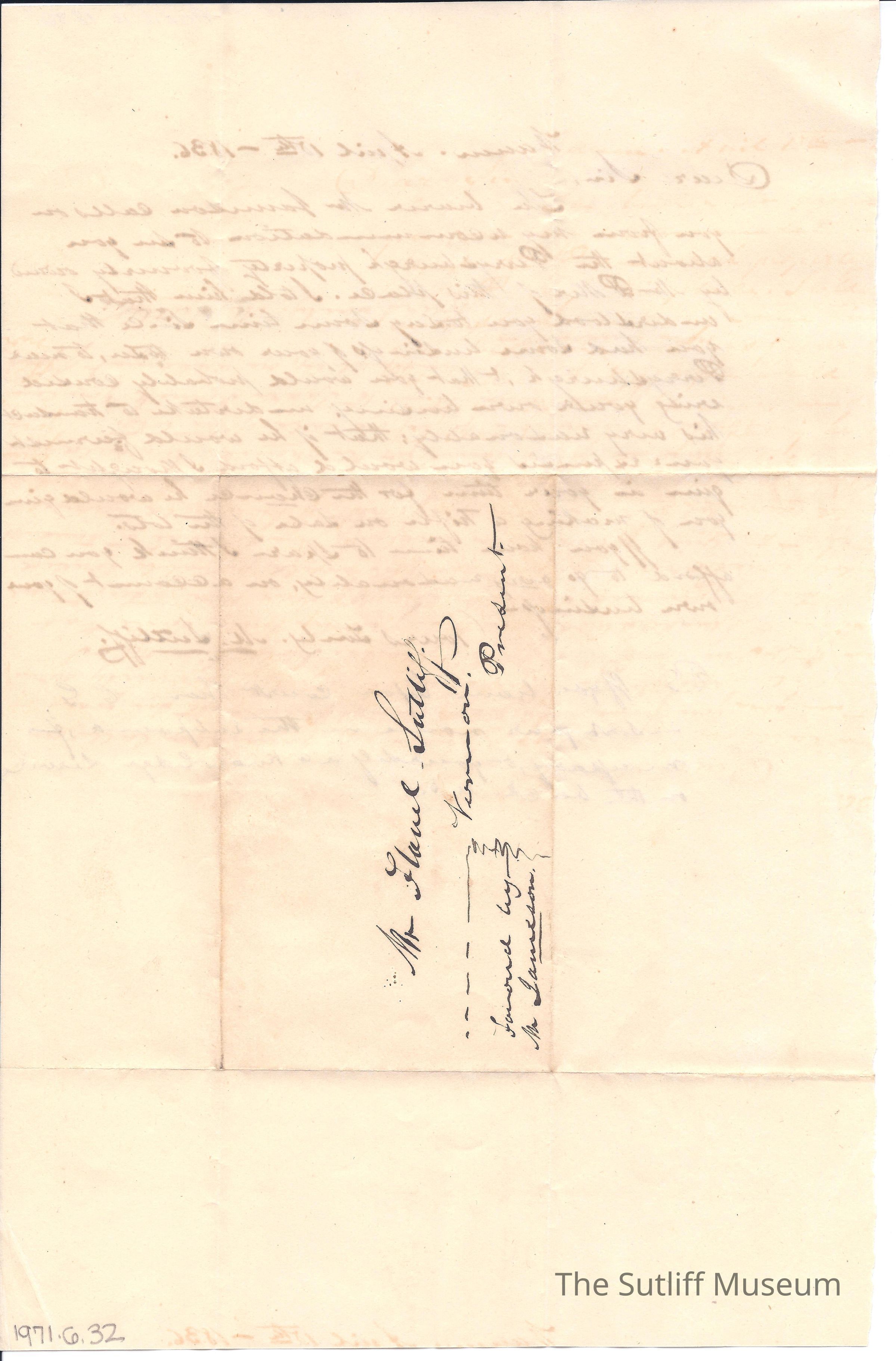 1830s, Correspondence Between Sutliffs, Money, LegalDescription