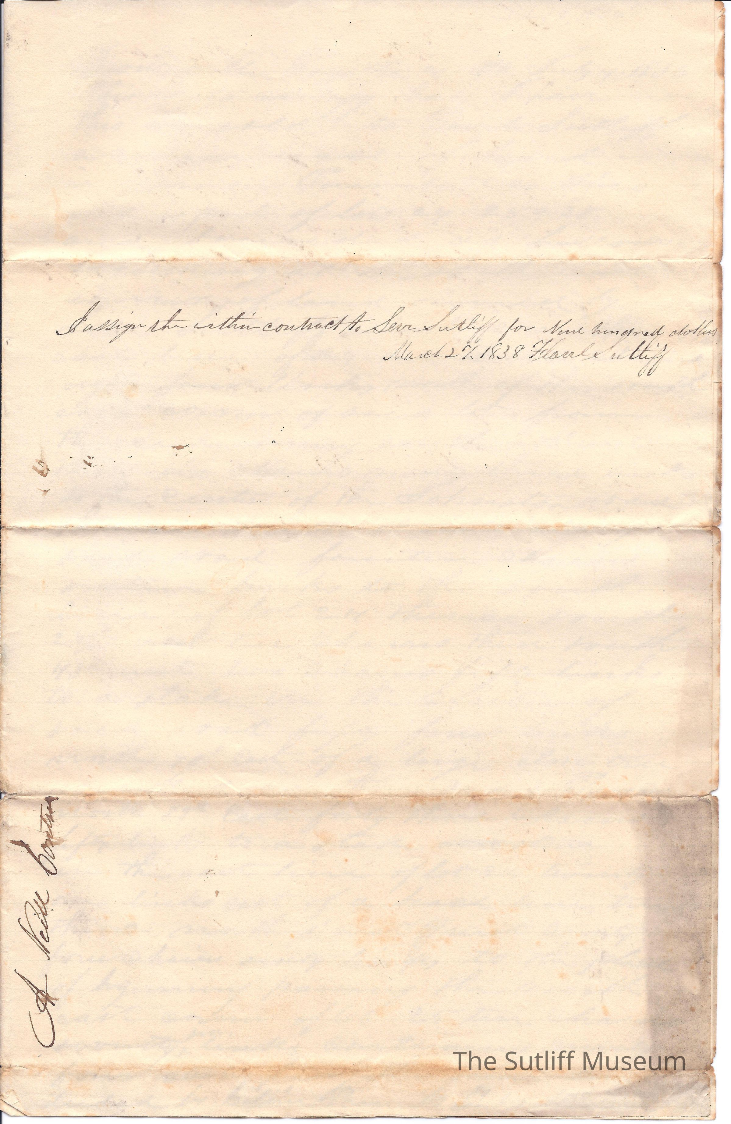 Letter from John A. Neill to Flavel Sutliff. Notice of Land Sale between John A. Neill and Flavel Sutliff in Vernon.