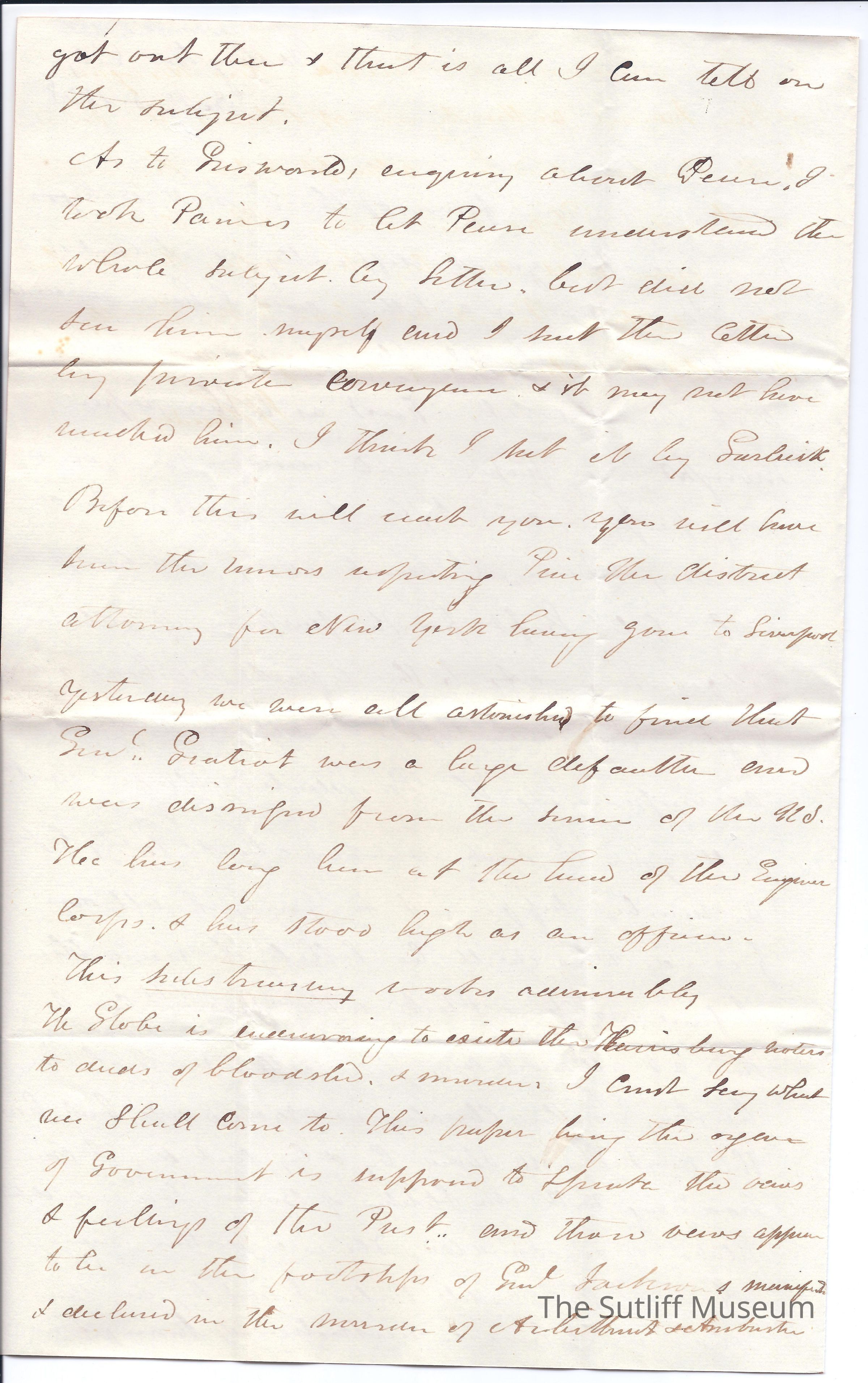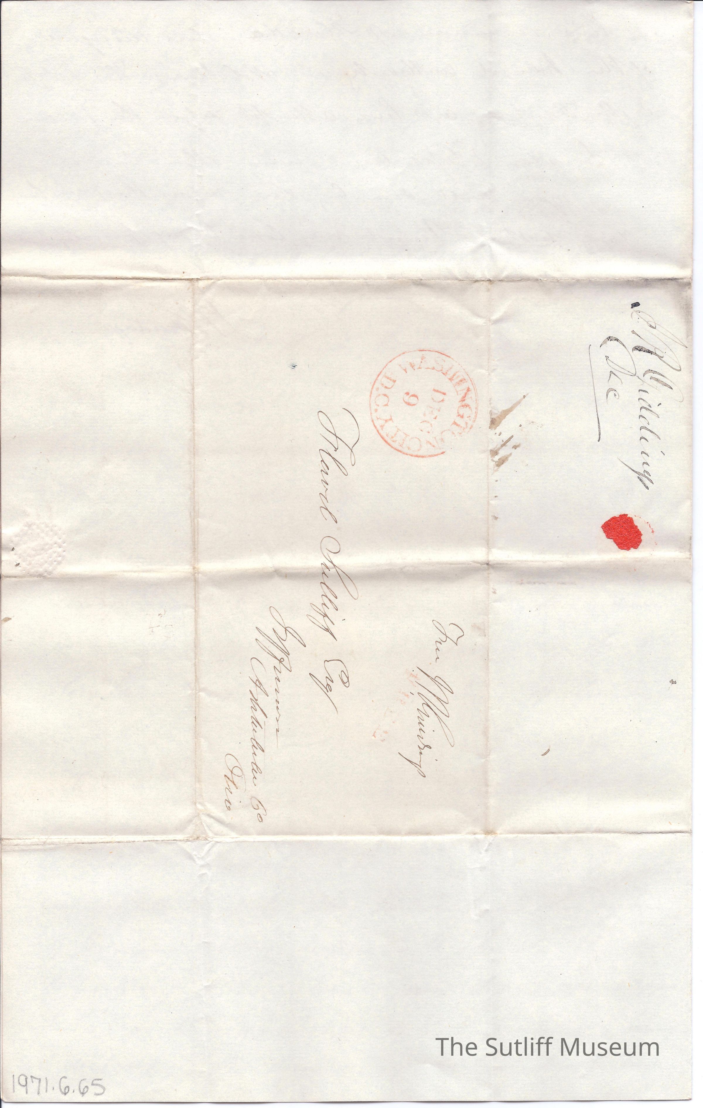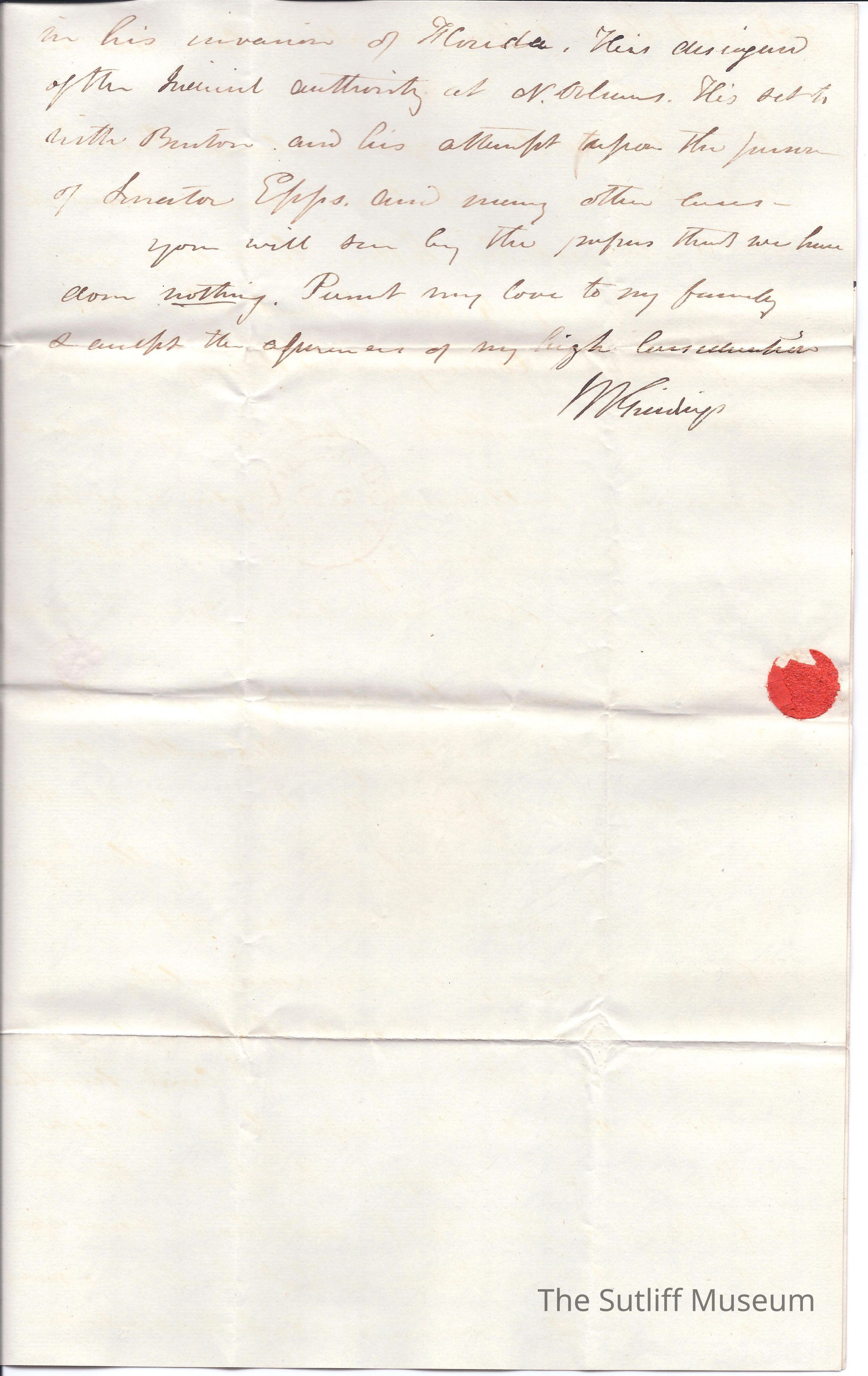 Letter from Joshua Giddings to Flavel Sutliff where he writes of an investigation into the Army affairs in Florida.Collection