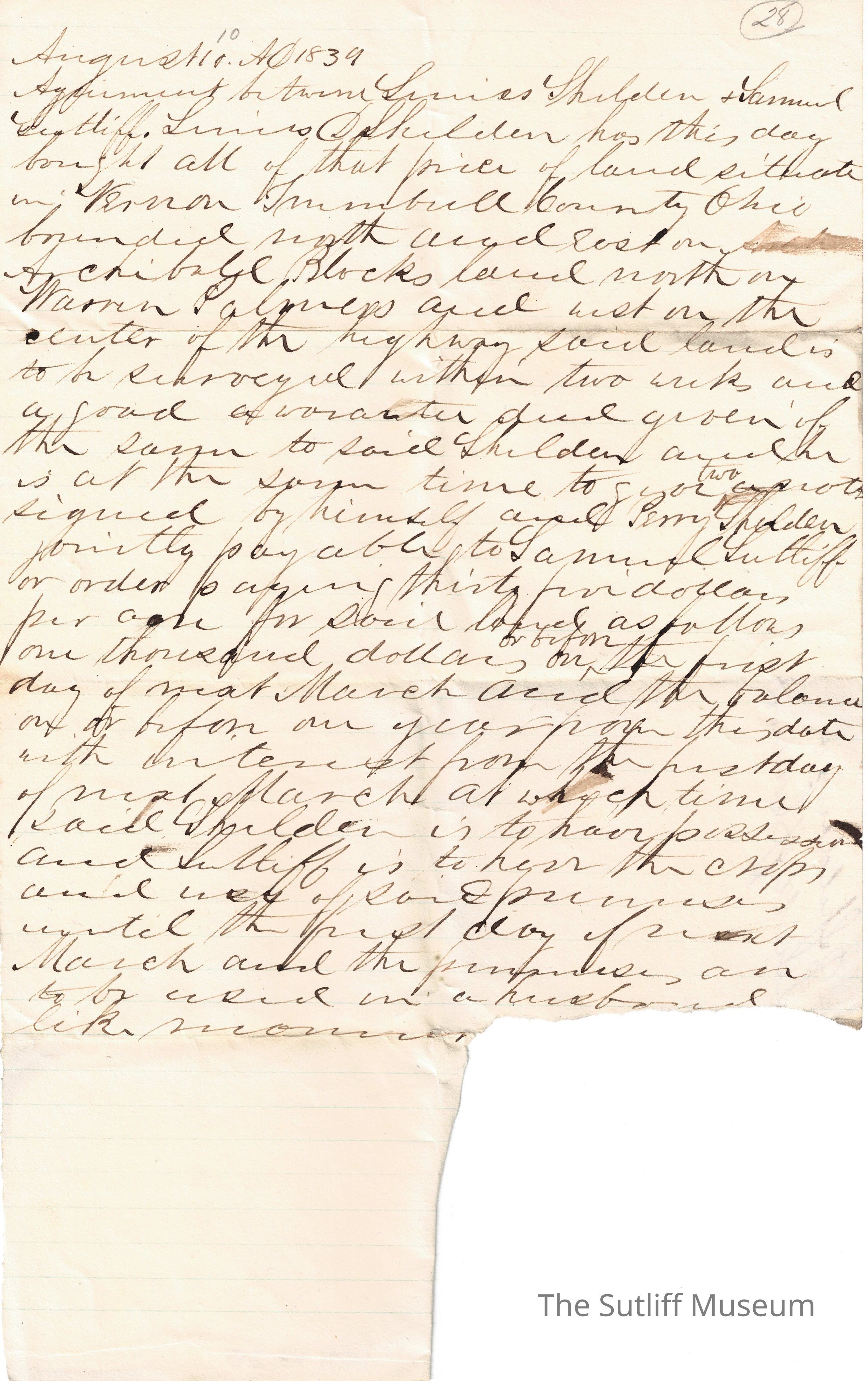 Contract between Linus Shelden & Samuel Sutliff