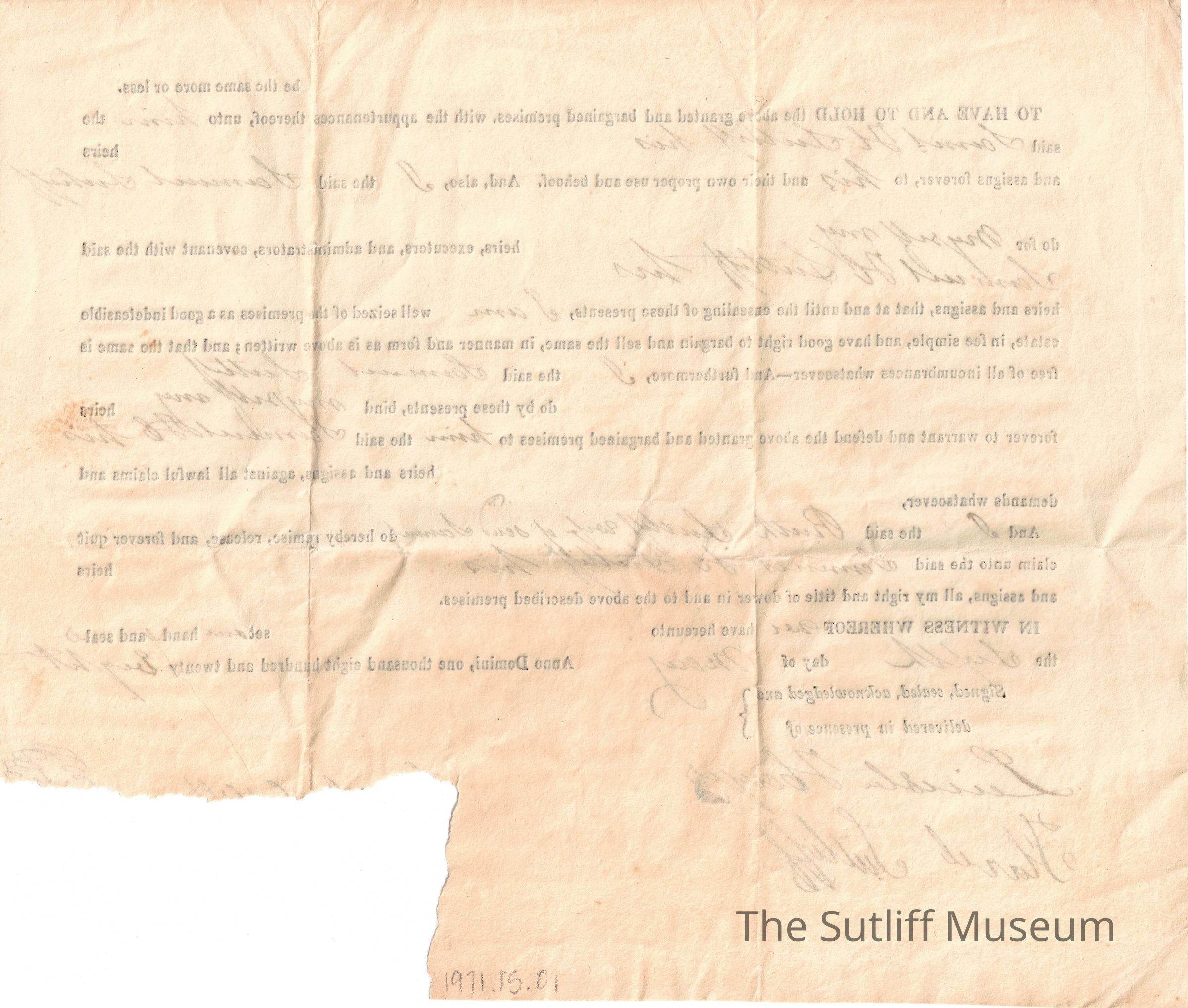 A contract of a transfer of money/dowery from Samuel and Ruth Sutliff to their son Samuel Harvey Sutliff.Collection