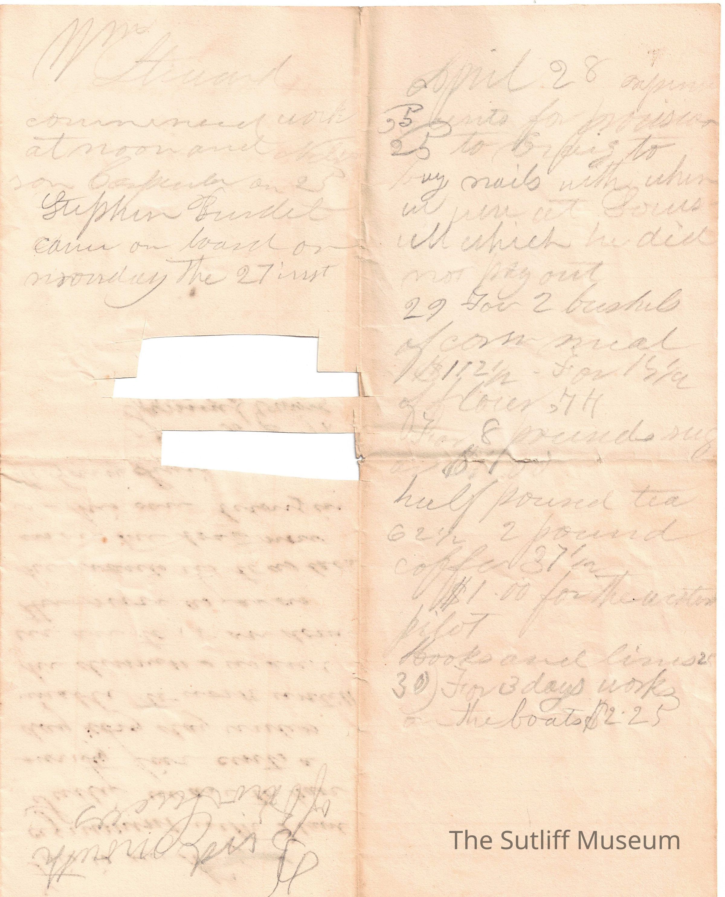 Agreement between Samuel [?] to Flavel Sutliff.