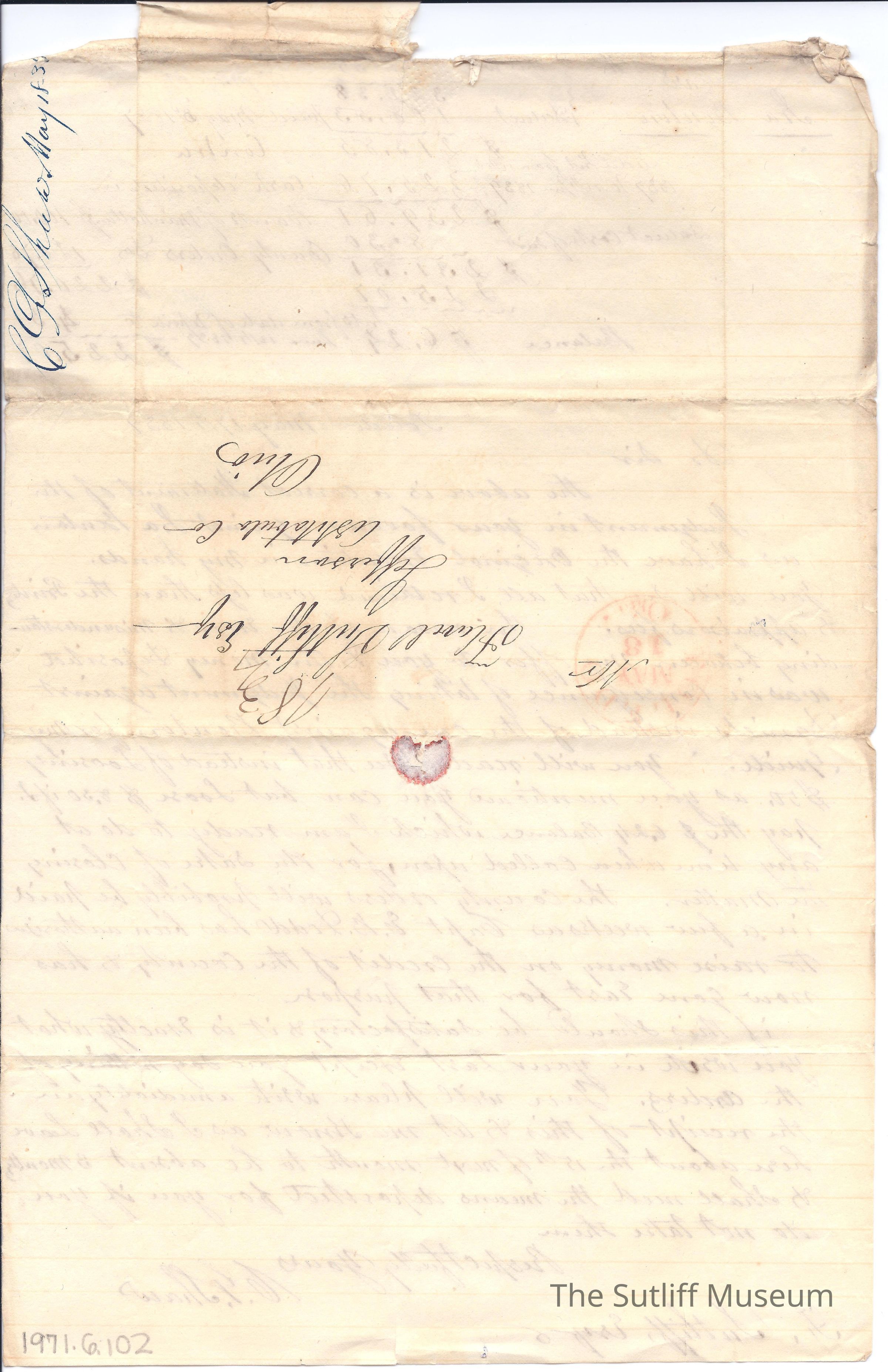 C.G Shaw to Flavel Sutliff providing a fiscal accounting of the judgment Flavel won against Ira Benton.
