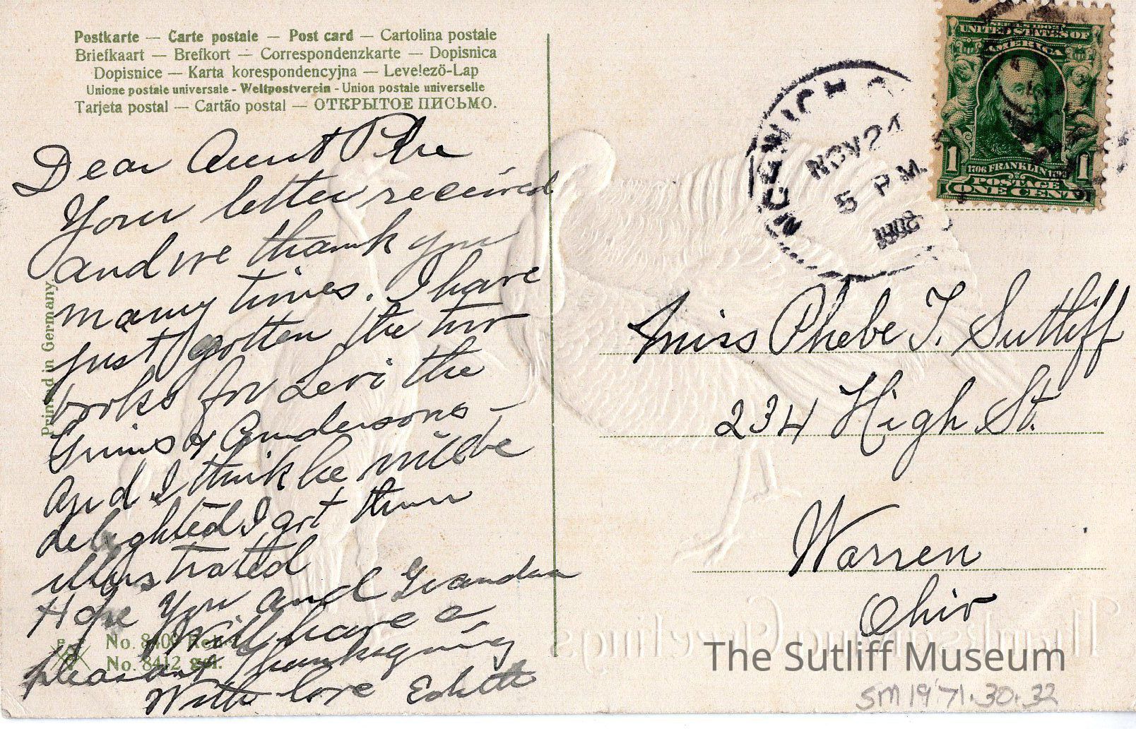 Postcard to Miss Phebe T. Sutliff from Edith G.S. TalbotEntry/Object ID