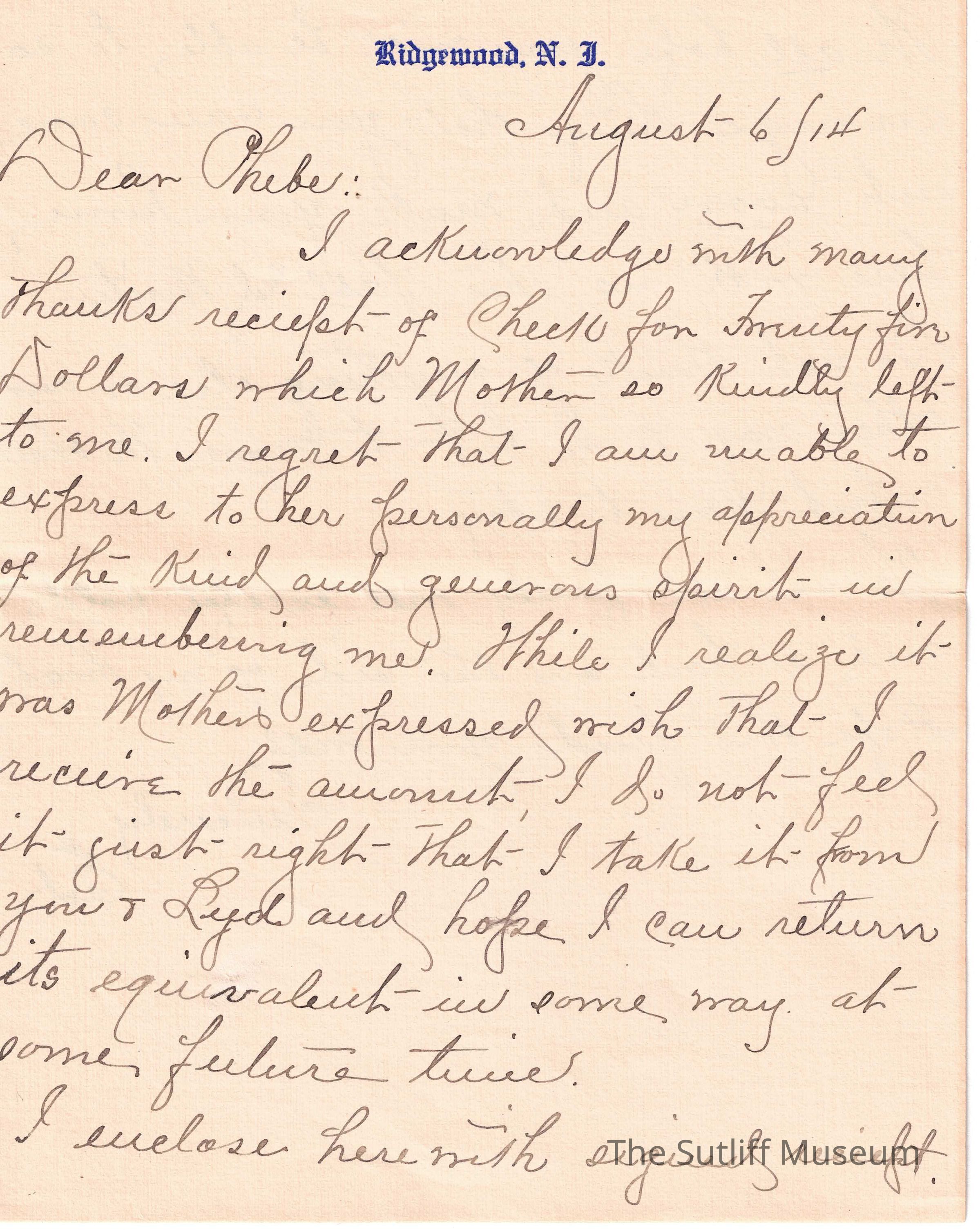 1910s, Family, Correspondence Between Sutliffs, MoneyDescription