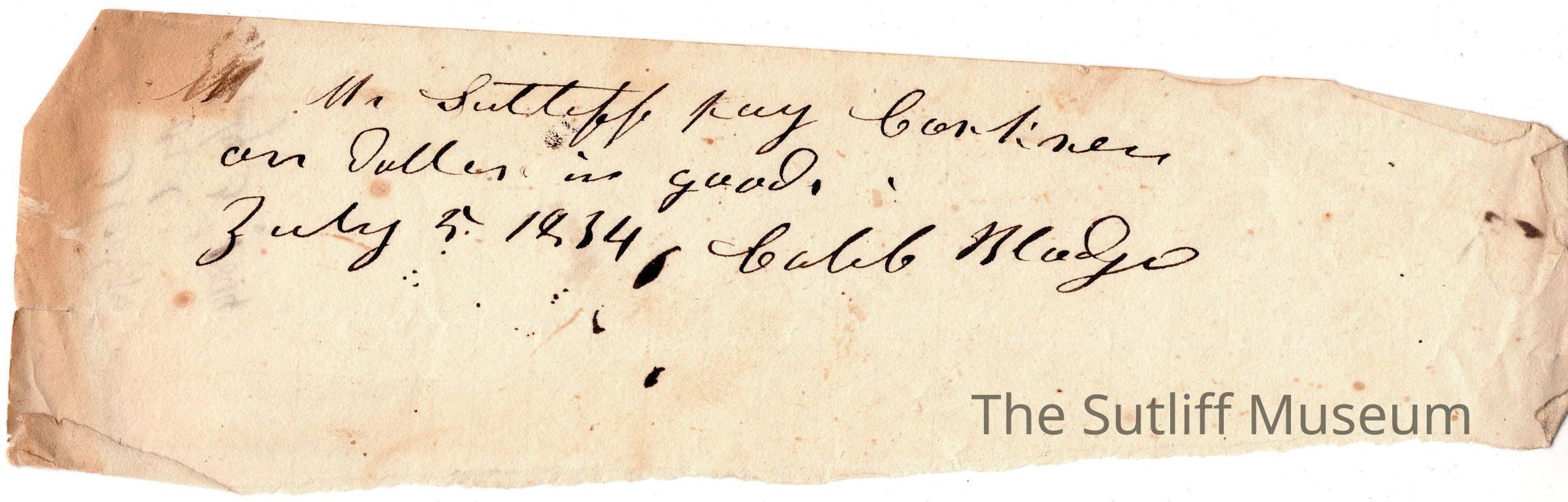 A note from Caleb Blodget to Levi Sutliff regarding a payment.Relationships