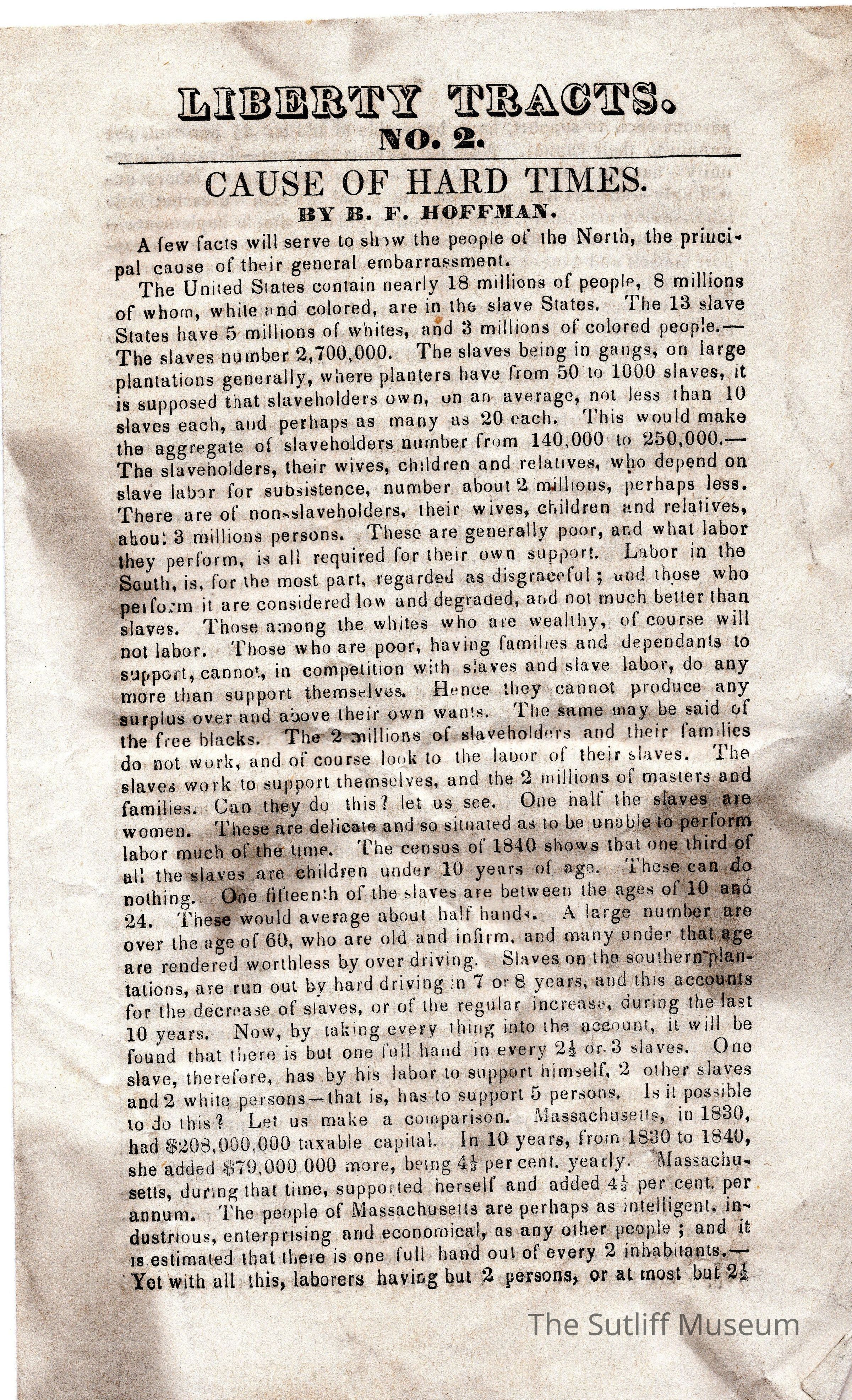 Liberty Tracts No. 2 - "Cause of Hard Times" by BF Hoffman Describes the facts to show the people of the North the principle causes of their general embarassment, the South