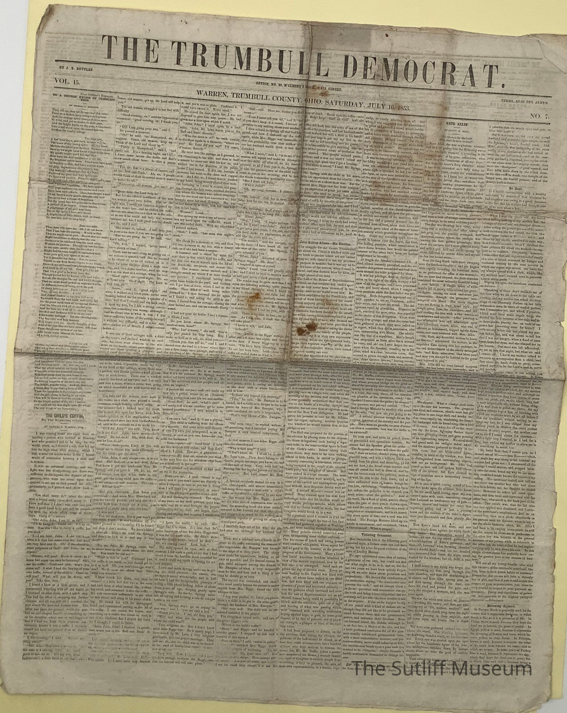 The Trumbull Democrat newspaper published on July 16, 1853.Collection