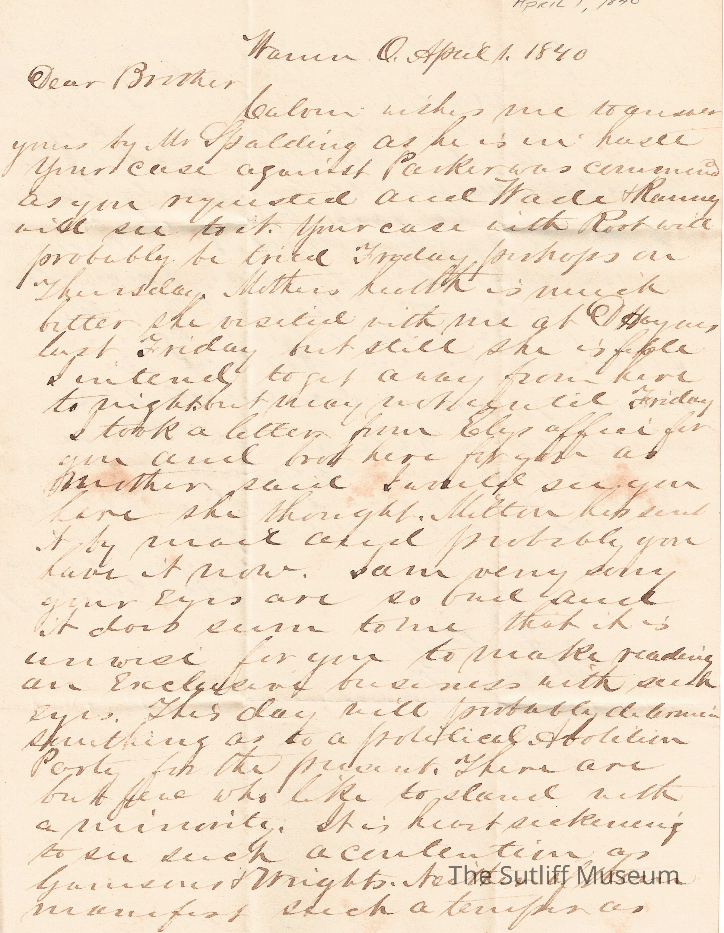 1840s, Business, Abolitionist/Anit-Slavery Movement, Correspondence Between Sutliffs, Family, Legal, PoliticsDescription