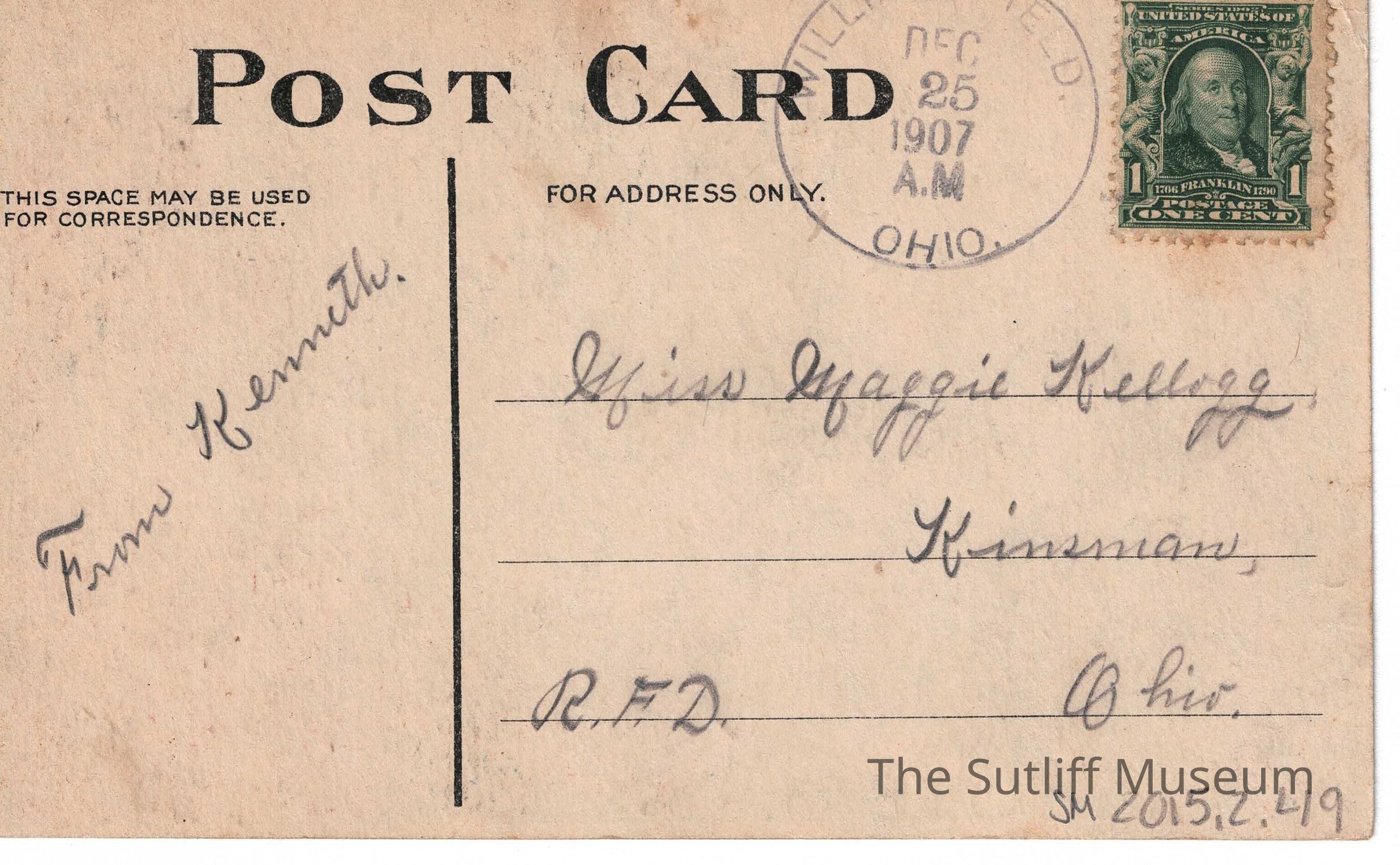 Art, Artifacts, Correspondence/Postcard, Cultural Activities, Domestic Life, Postal Services, People, Social & Personal Activity, Kinsman, Ohio
