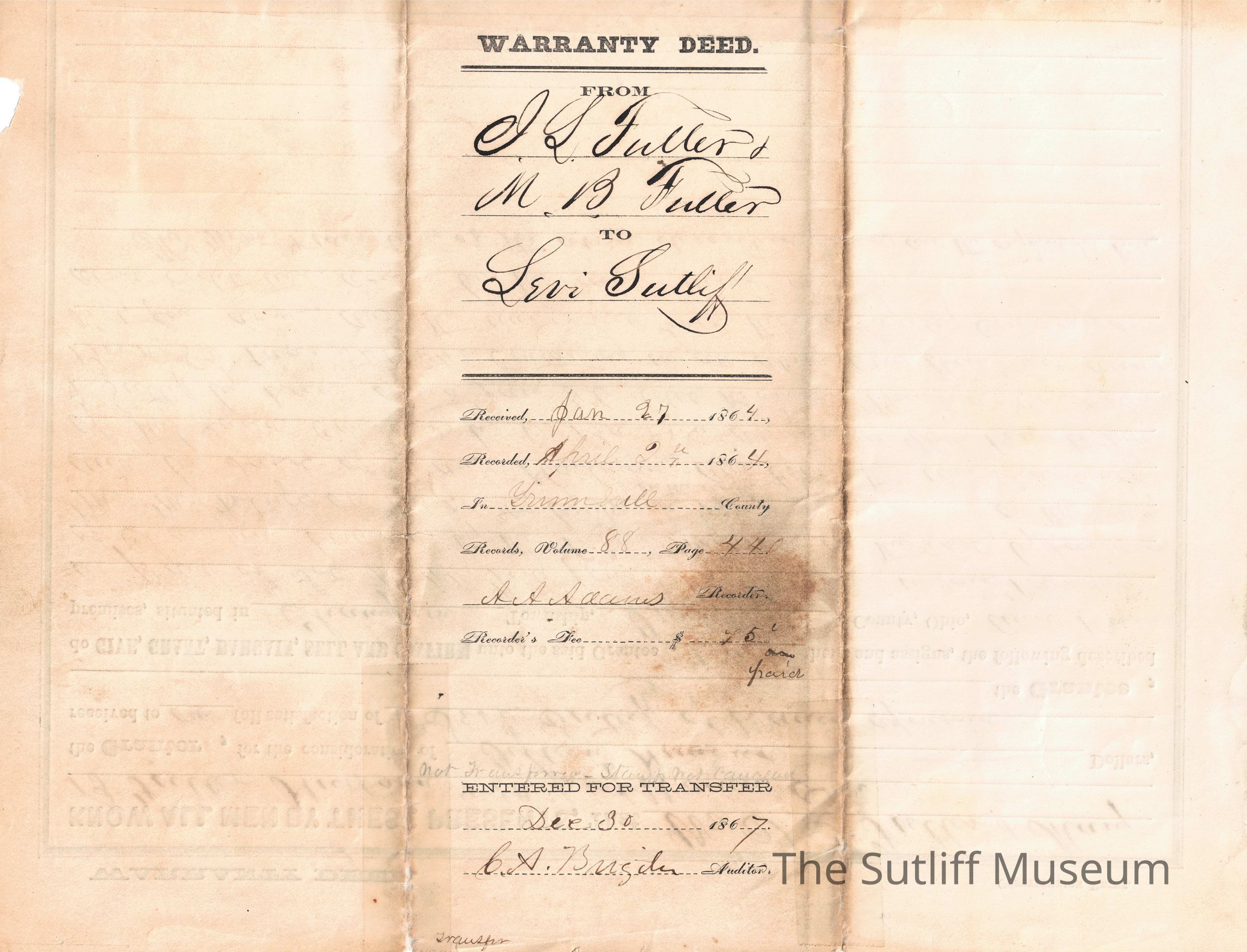 Deed to Levi Sutliff from I. S. Fuller and Mary B. FullerEntry/Object ID