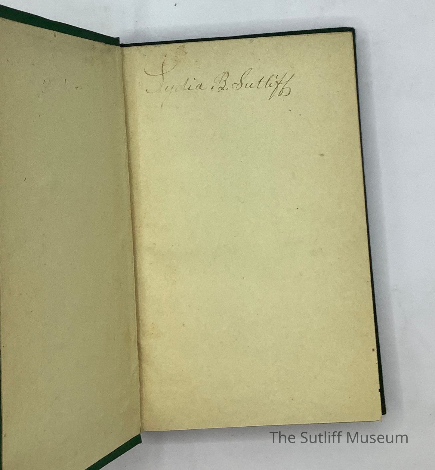 Green cloth hardbound with blind embossed design on front cover and gold embossed title, author and publication information on spine. Handwritten inscription on frontspiece reads: " Lydia B. Sutliff" 171 pages.Collection