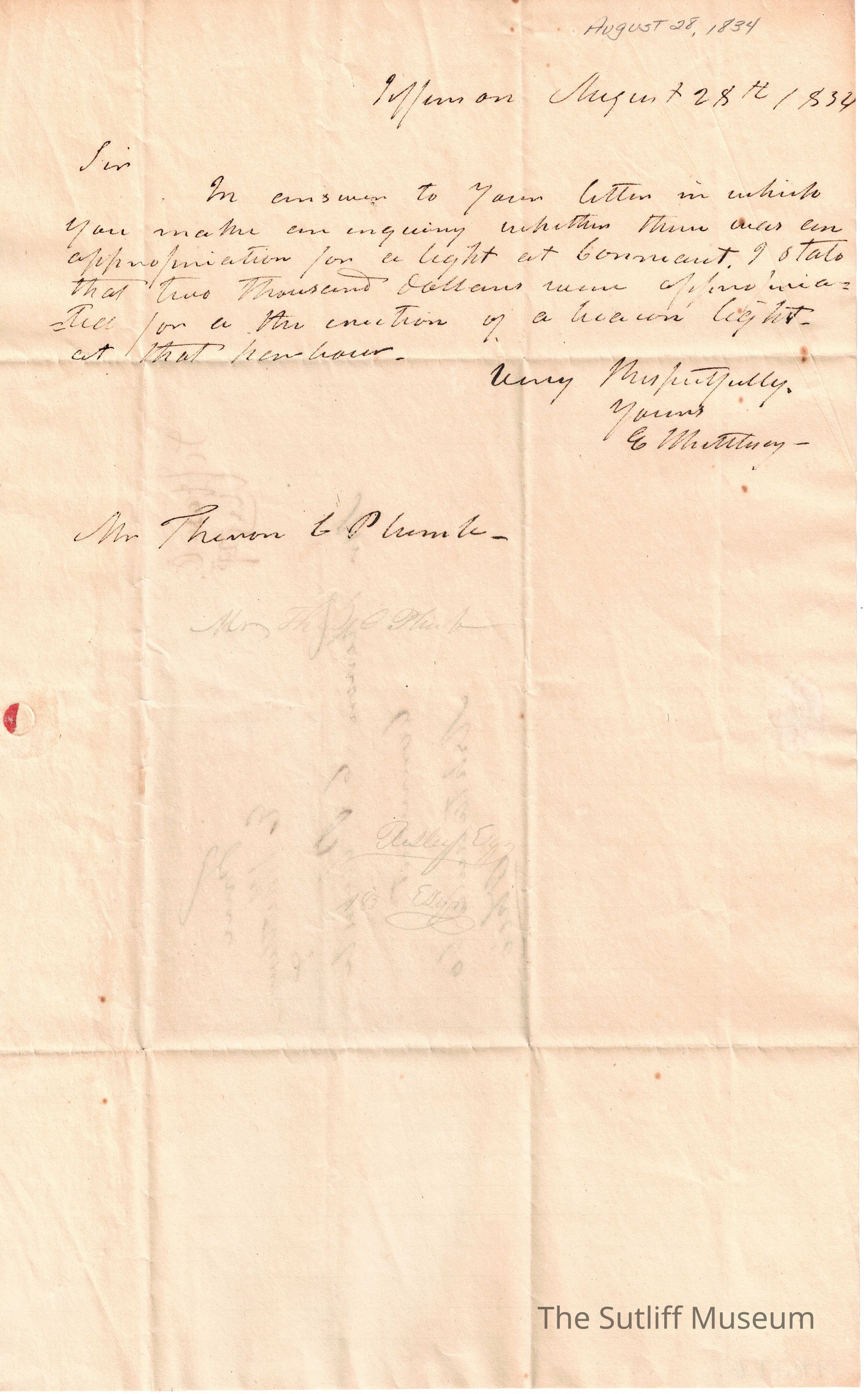 E Mattliney to Theron C Plumb