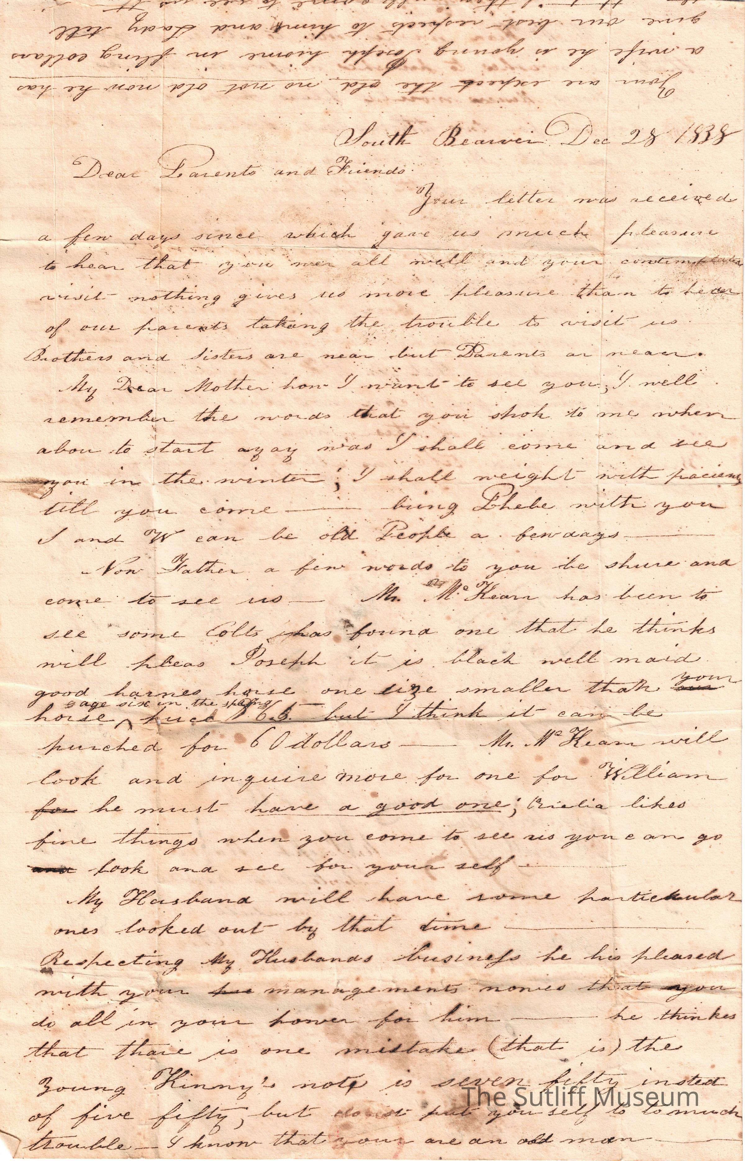 1830s, Travel, Family, Correspondence Between SutliffsDescription