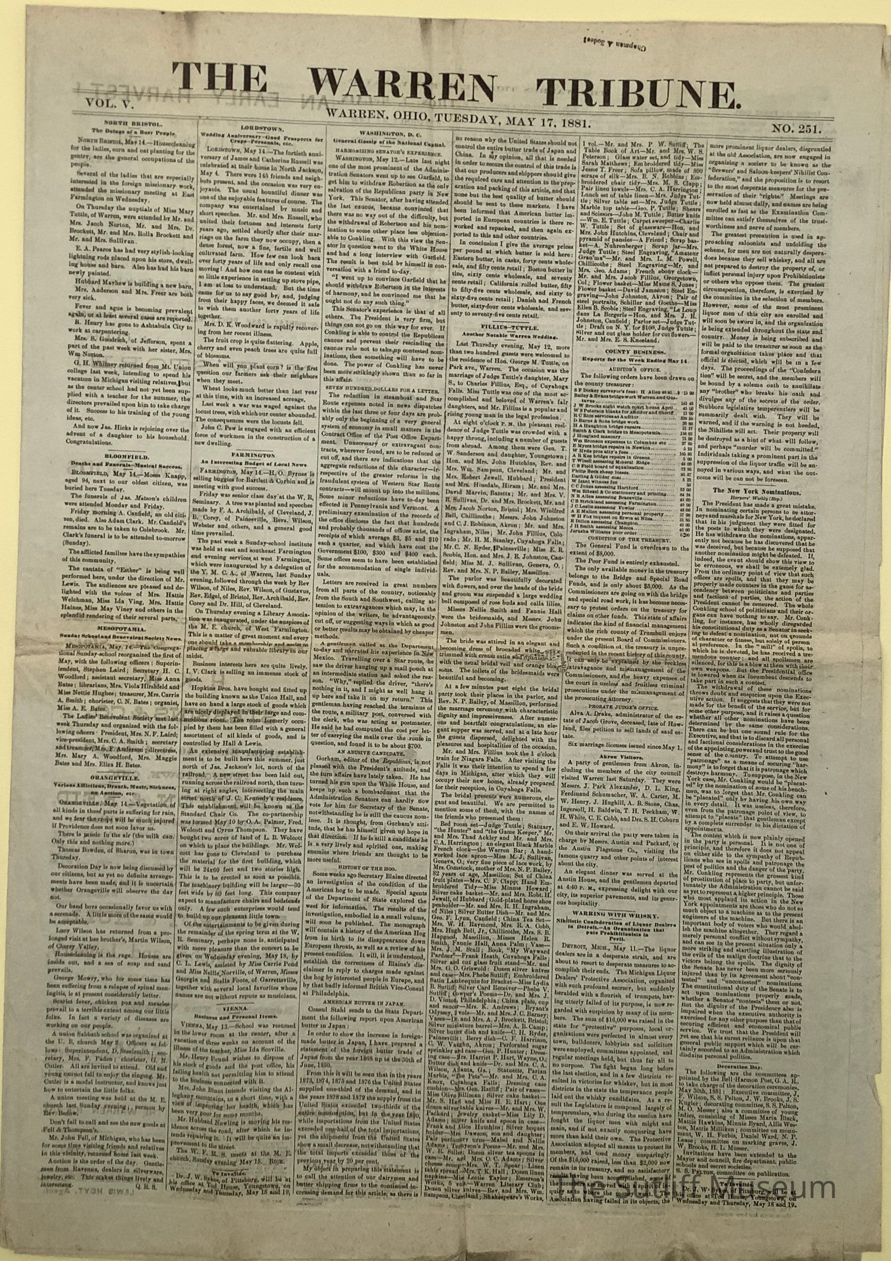 The Warren Tribune newspaper published on May 17, 1881.Collection