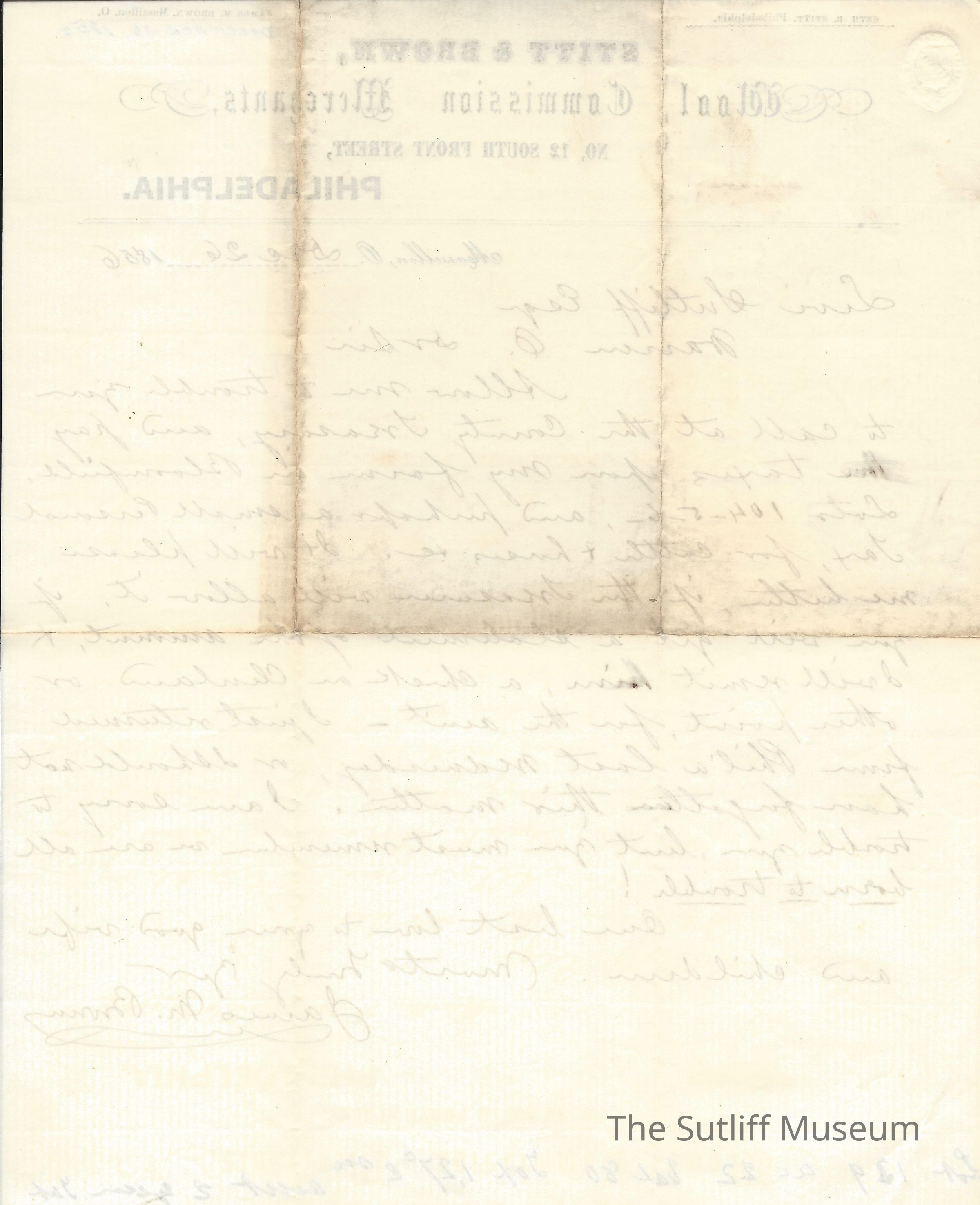 A letter from James M. Brown to Levi Sutliff regarding taxes on the farm in Bloomsfield.Collection