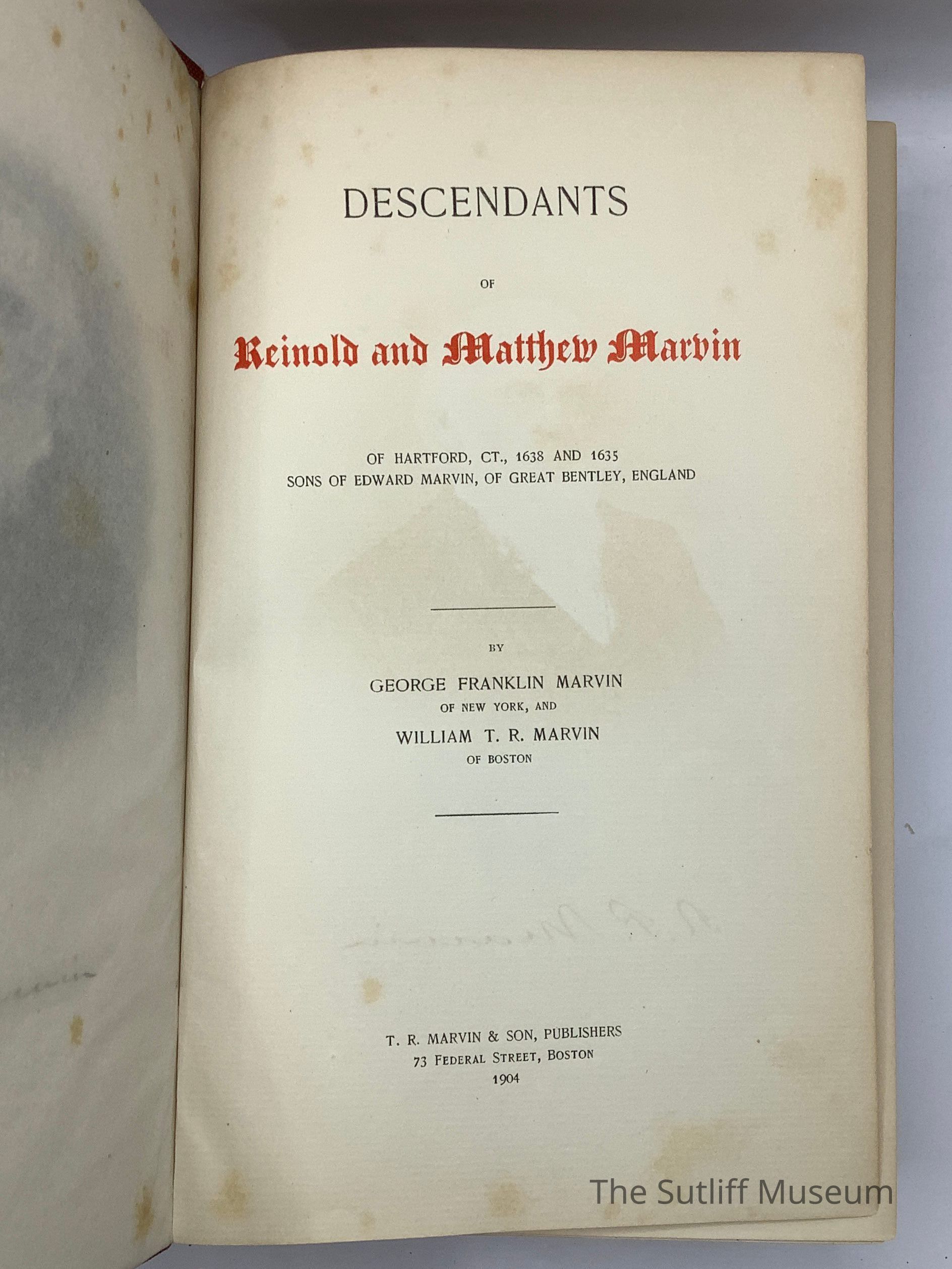 The Marvin Family: Descendentants of Reinold and Matthew: 1635-1904Entry/Object ID