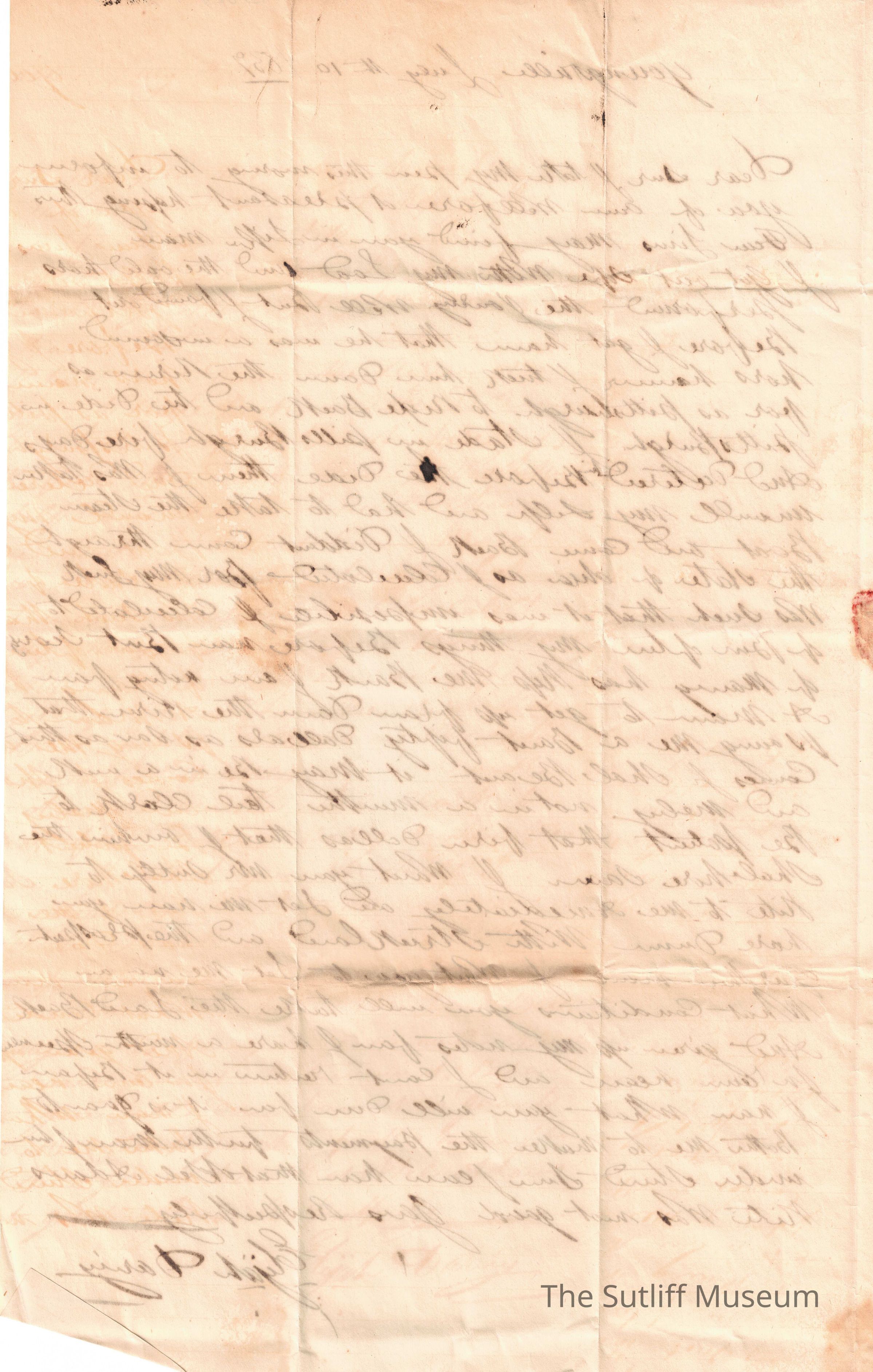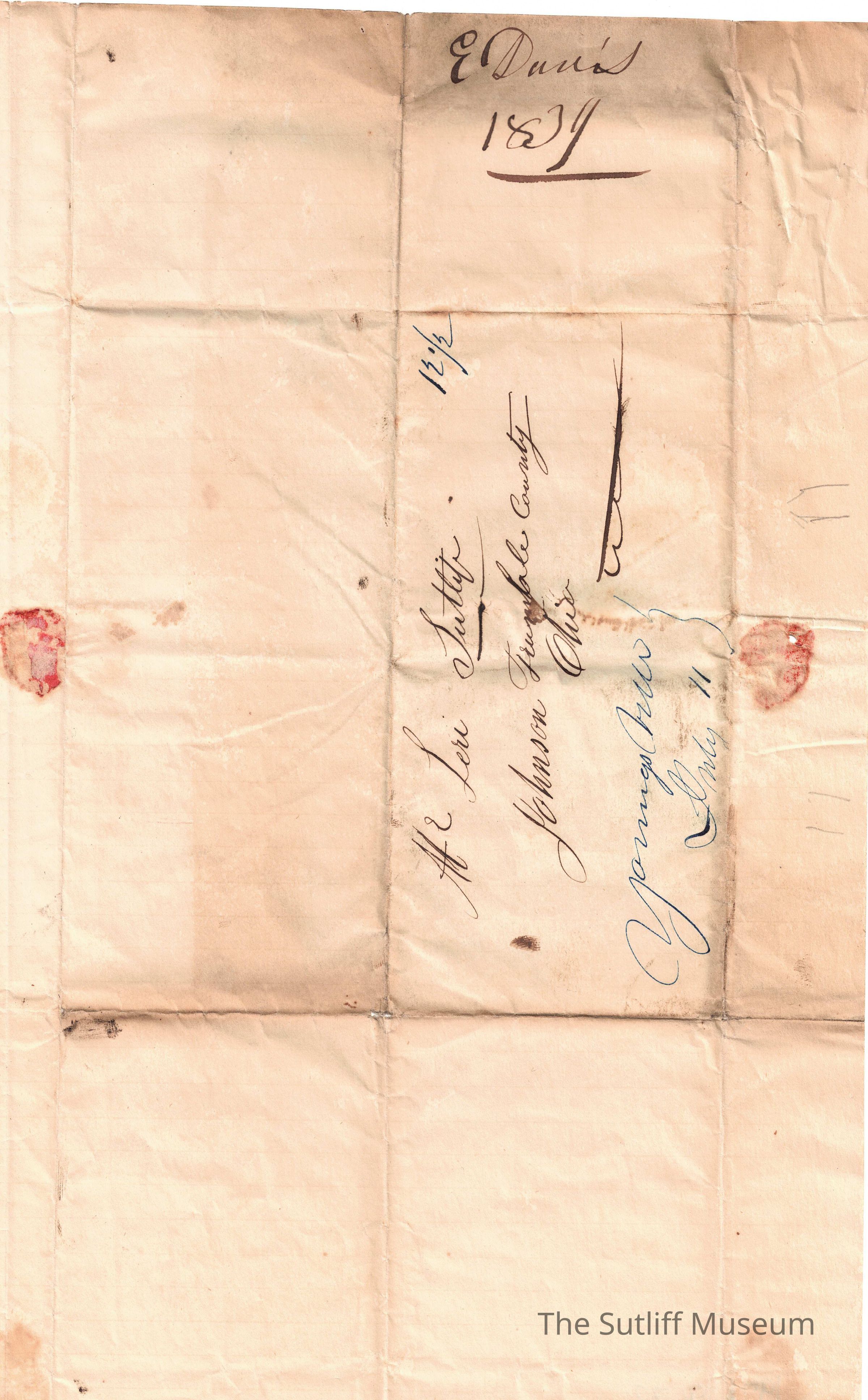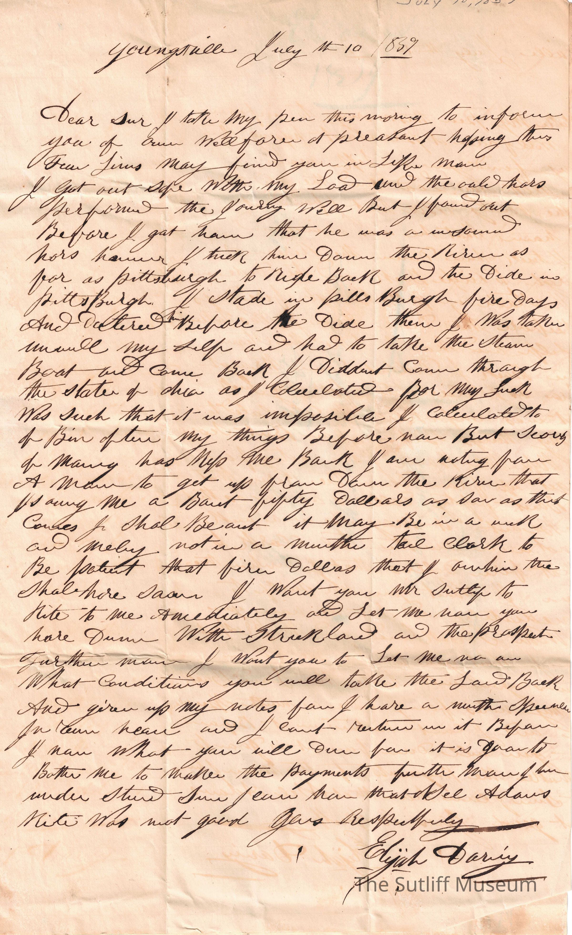 A letter from Elijah Davis to Levi Sutliff regarding his travel updates and difficulties.Collection