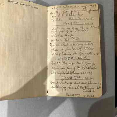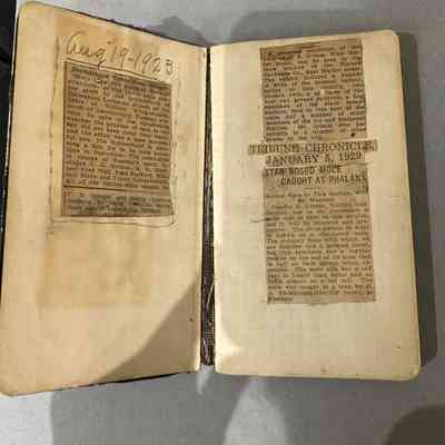 A book detailing Charles E. Grimm's taxidermy work as well as news clippings related to his work.