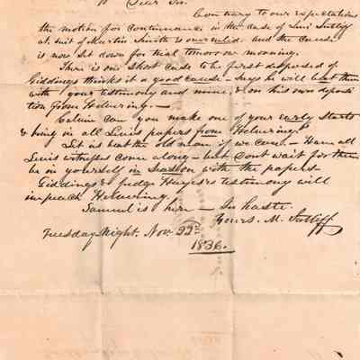 A letter from Milton Sutliff to Calvin Granger Sutliff regarding Levi Sutliff and J.R. Giddings legal proceedings.Relationships