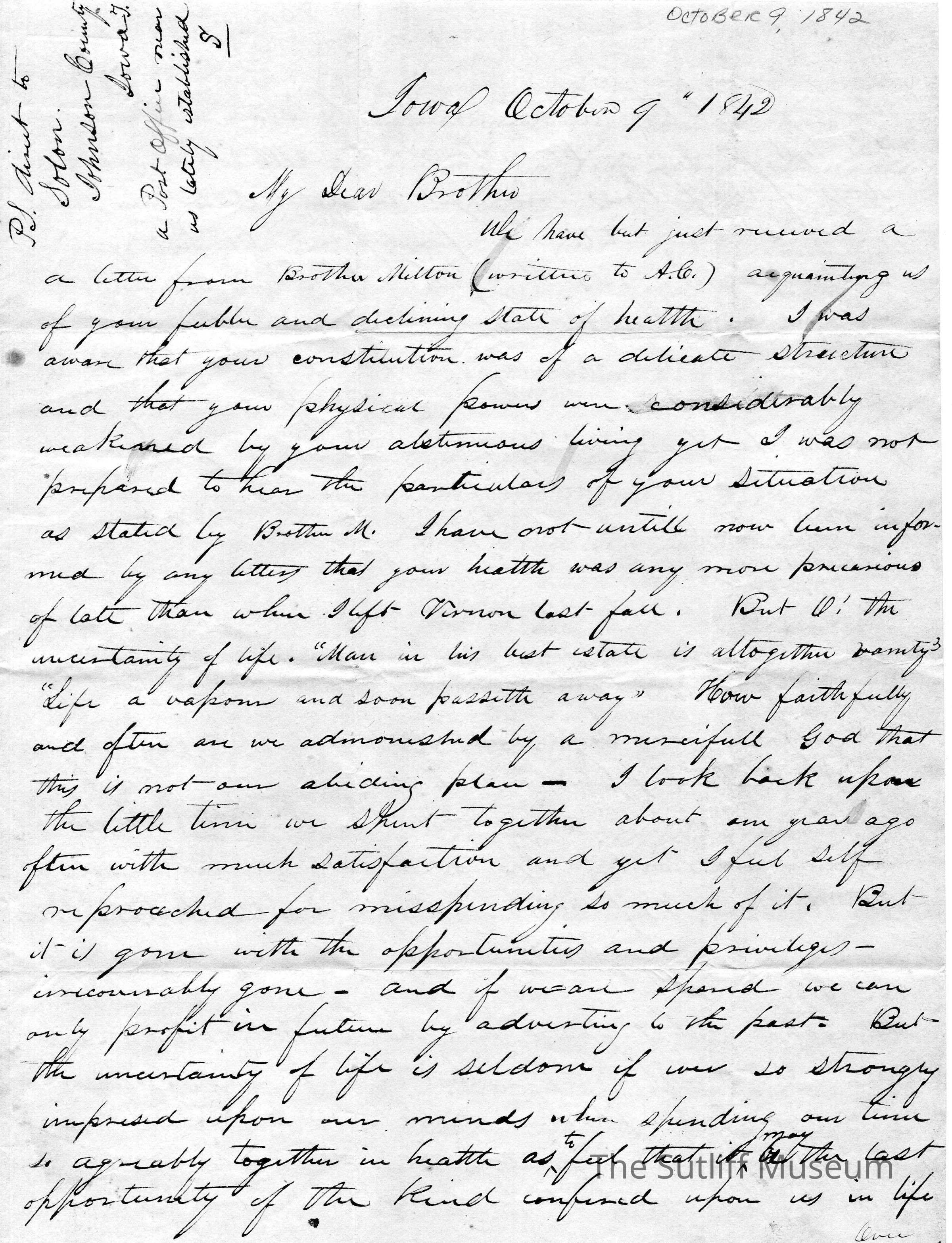 1840s, Correspondence Between Sutliffs, Illness, Money, ReligionDescription