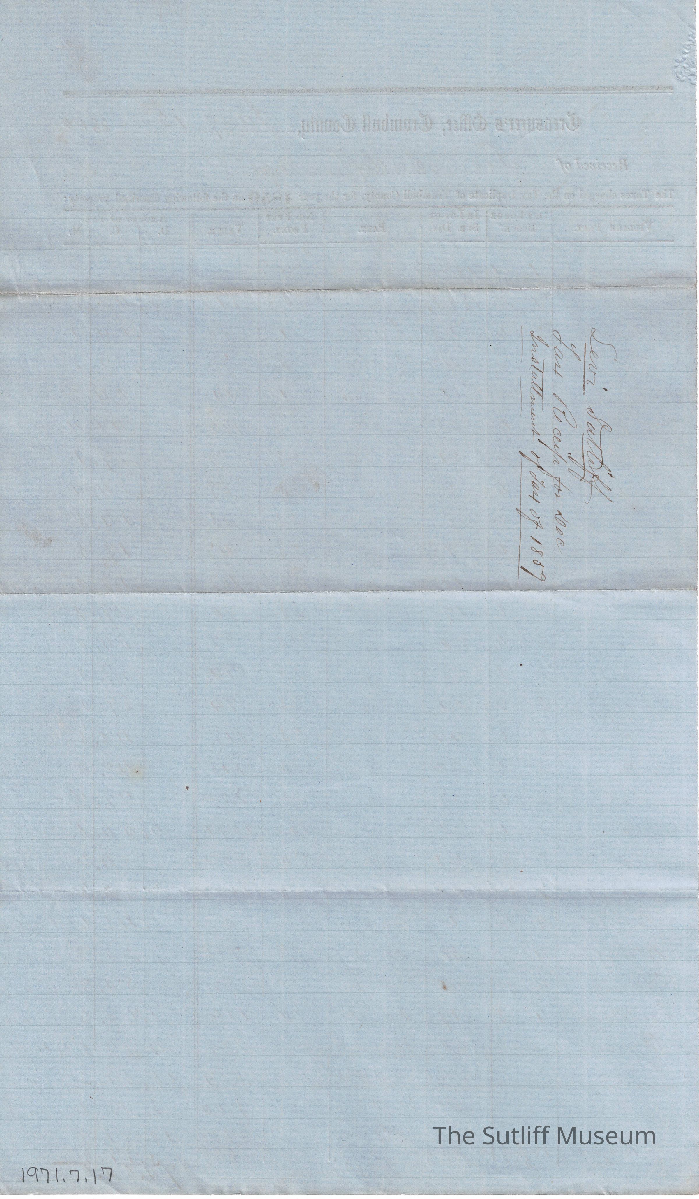 A small sheet listing Levi Sutliff's taxes for the 1859 year, most likely a business account.Relationships