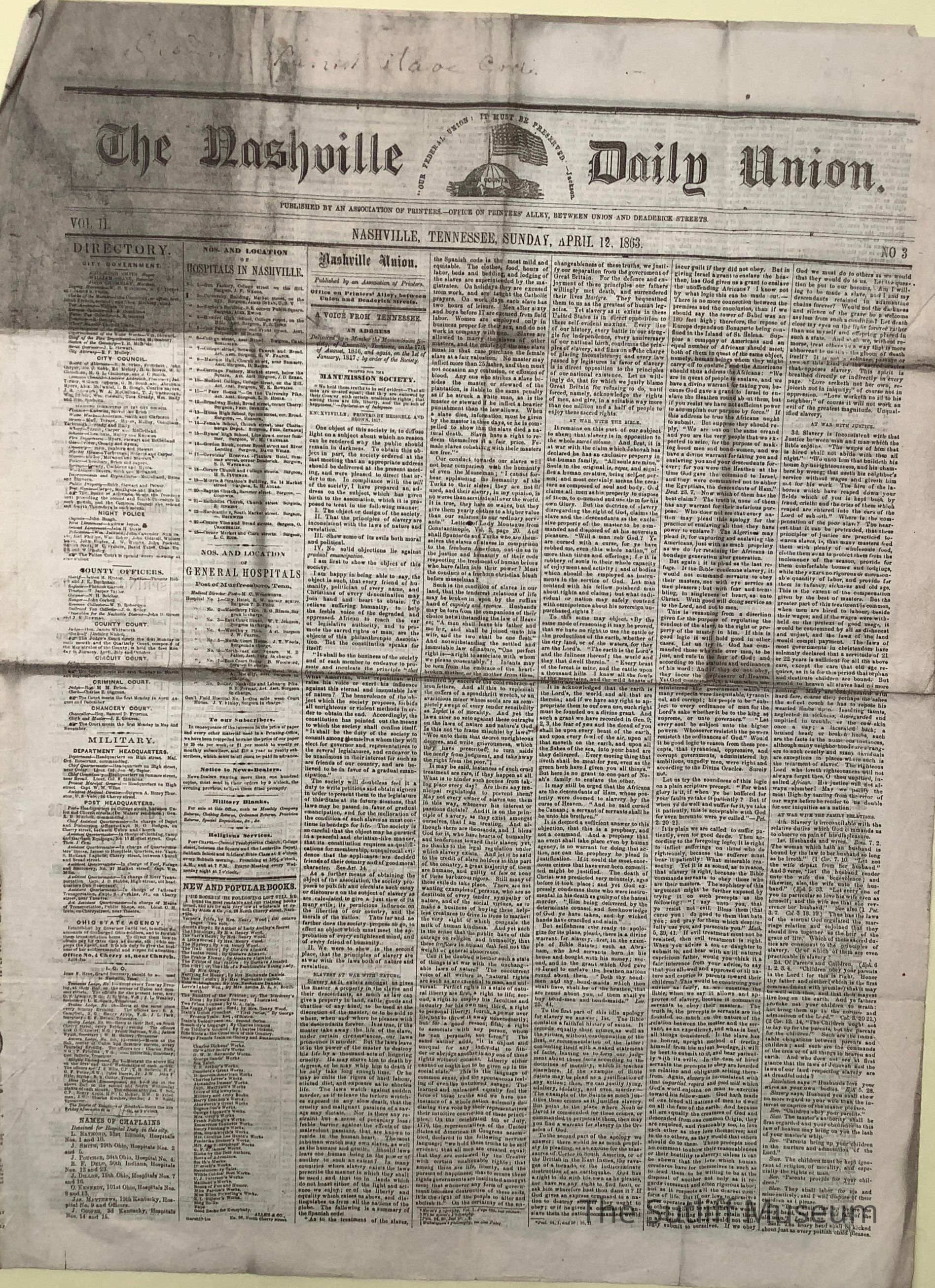 The Nashville Daily Union newspaper, published April 12, 1863.Collection