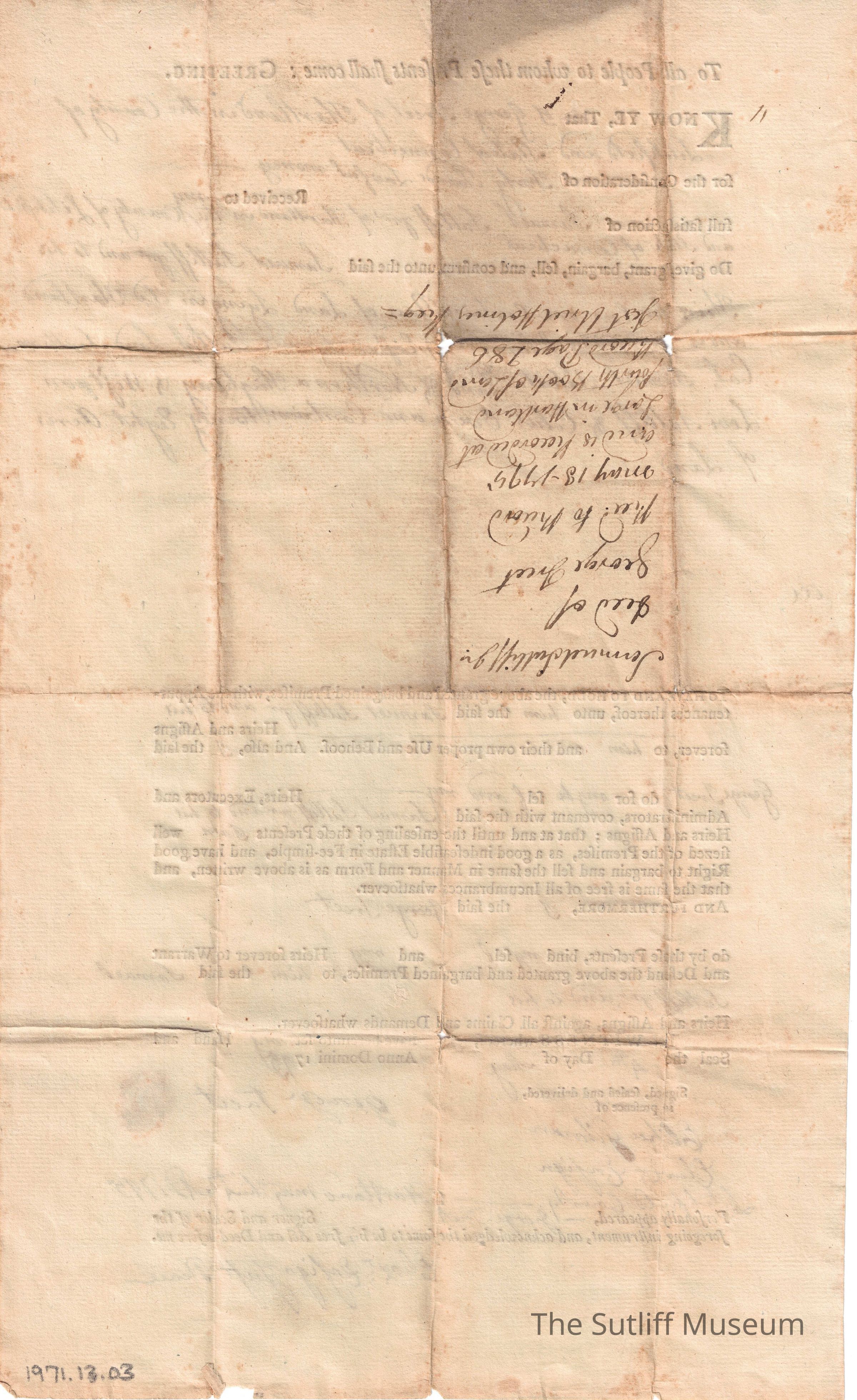 Transition of land deed from George Treet to Samuel Sutliff Jr.