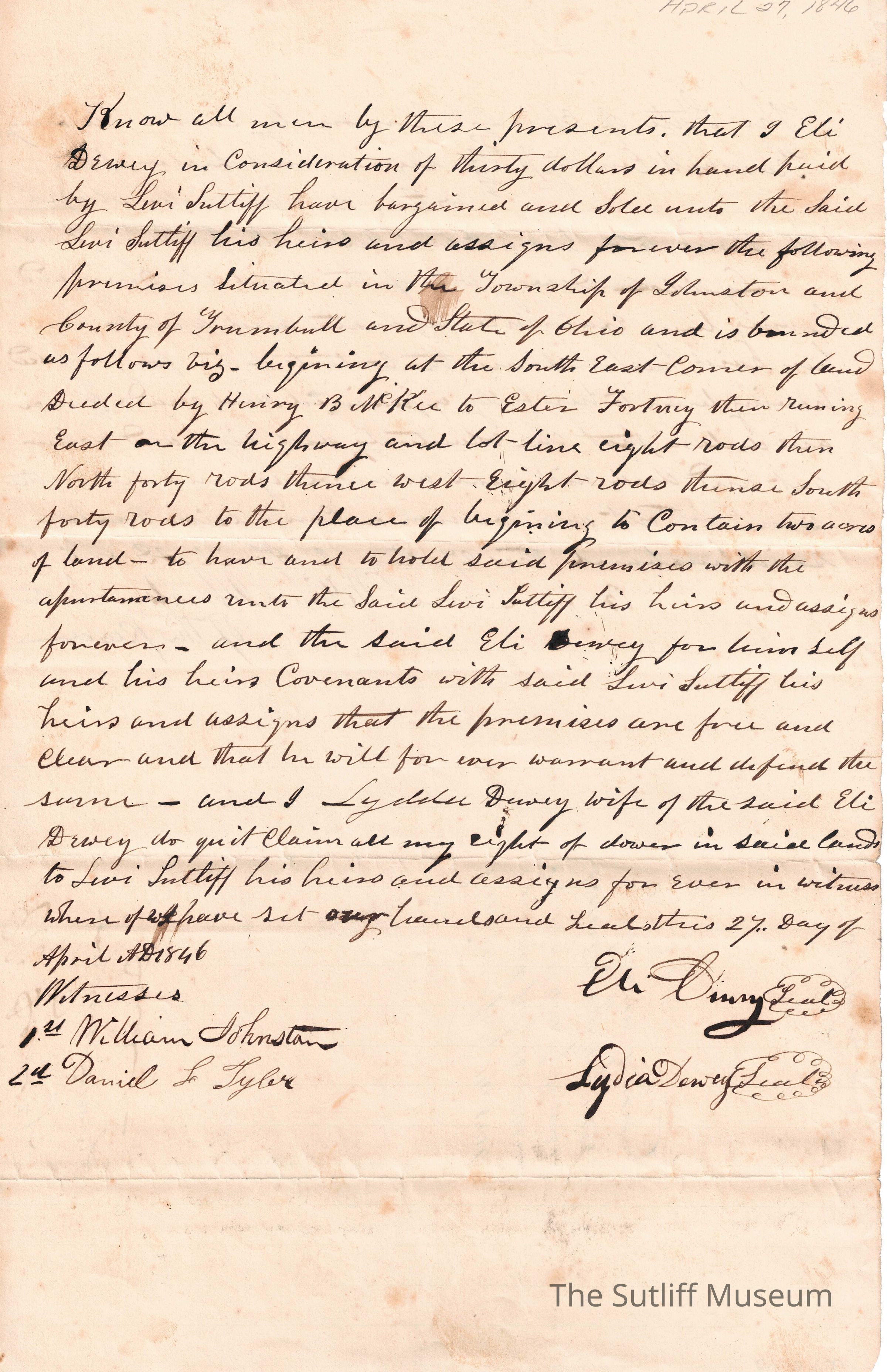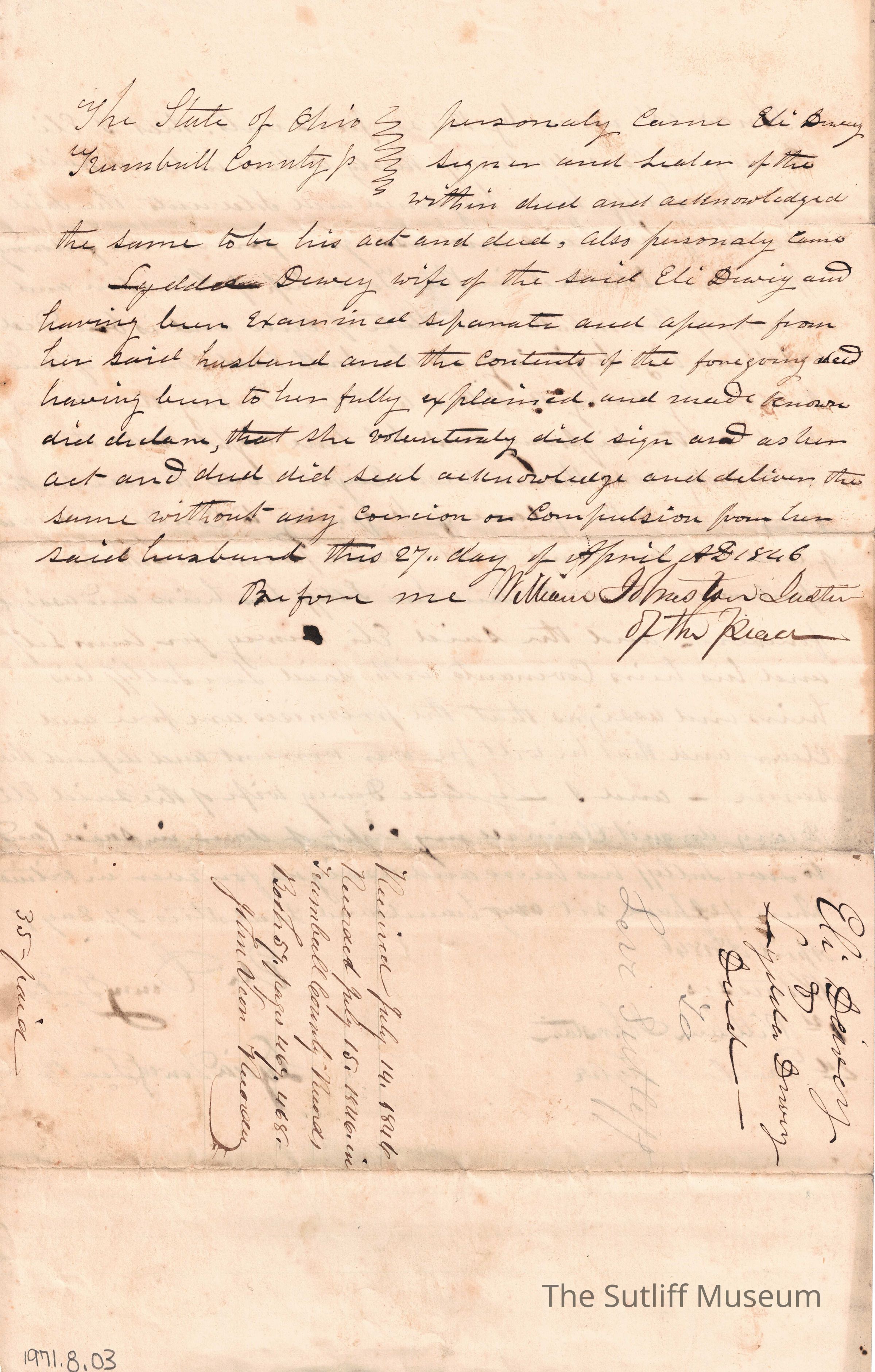 Eli Dewey to Levi SutliffEntry/Object ID