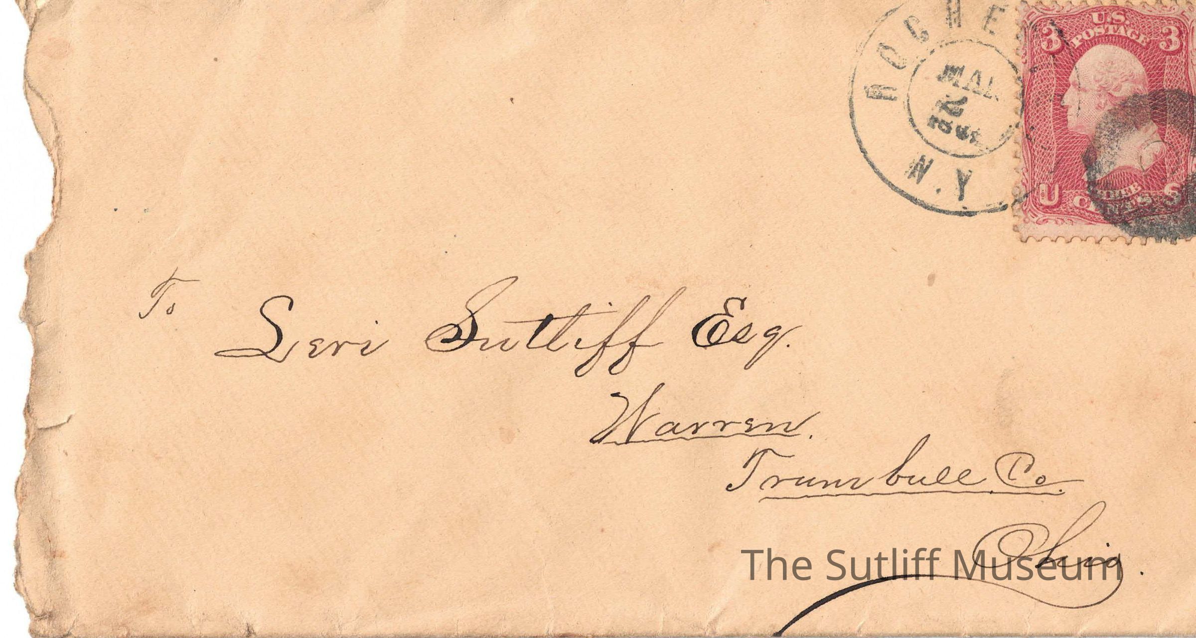 An envelope addressed to Levi Sutliff in Warren, Trumbull Co. Ohio. Associated with 1971.9.09.Collection
