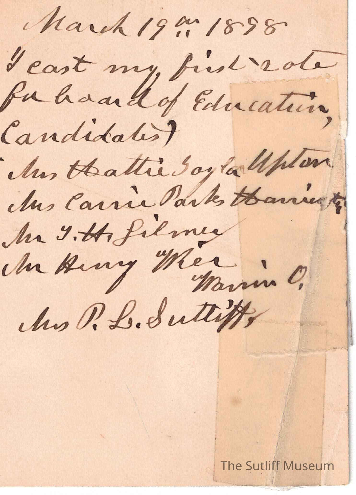 A note from Edward M. Sutliff to Mrs. H.W. Kellogg regarding the Board of Education.