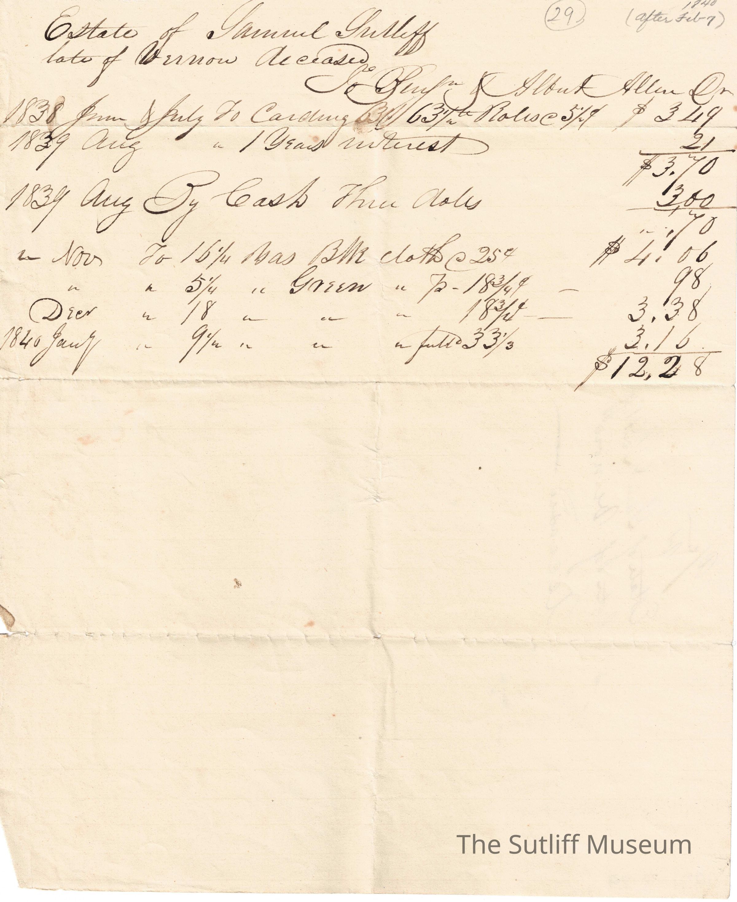 An inventory of Samuel Sutliff Sr.'s estate after his death.Collection