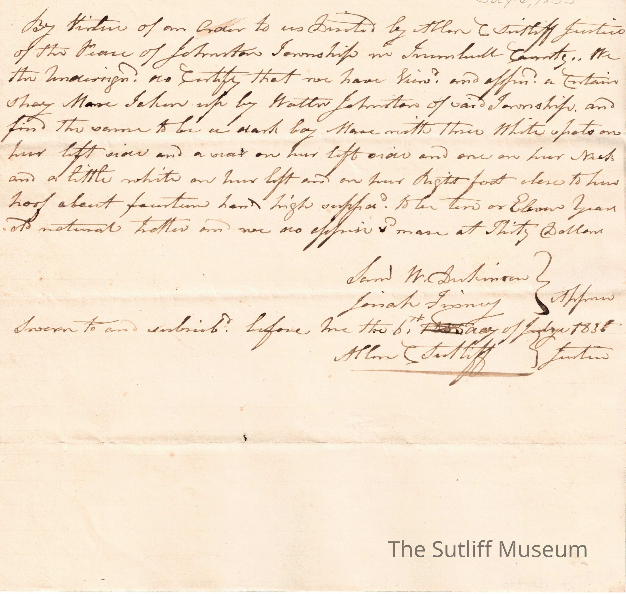 A letter from Allen Curtis Sutliff to Samuel W. Dickenson acting as the Justice of Peace of Johnston County.Relationships