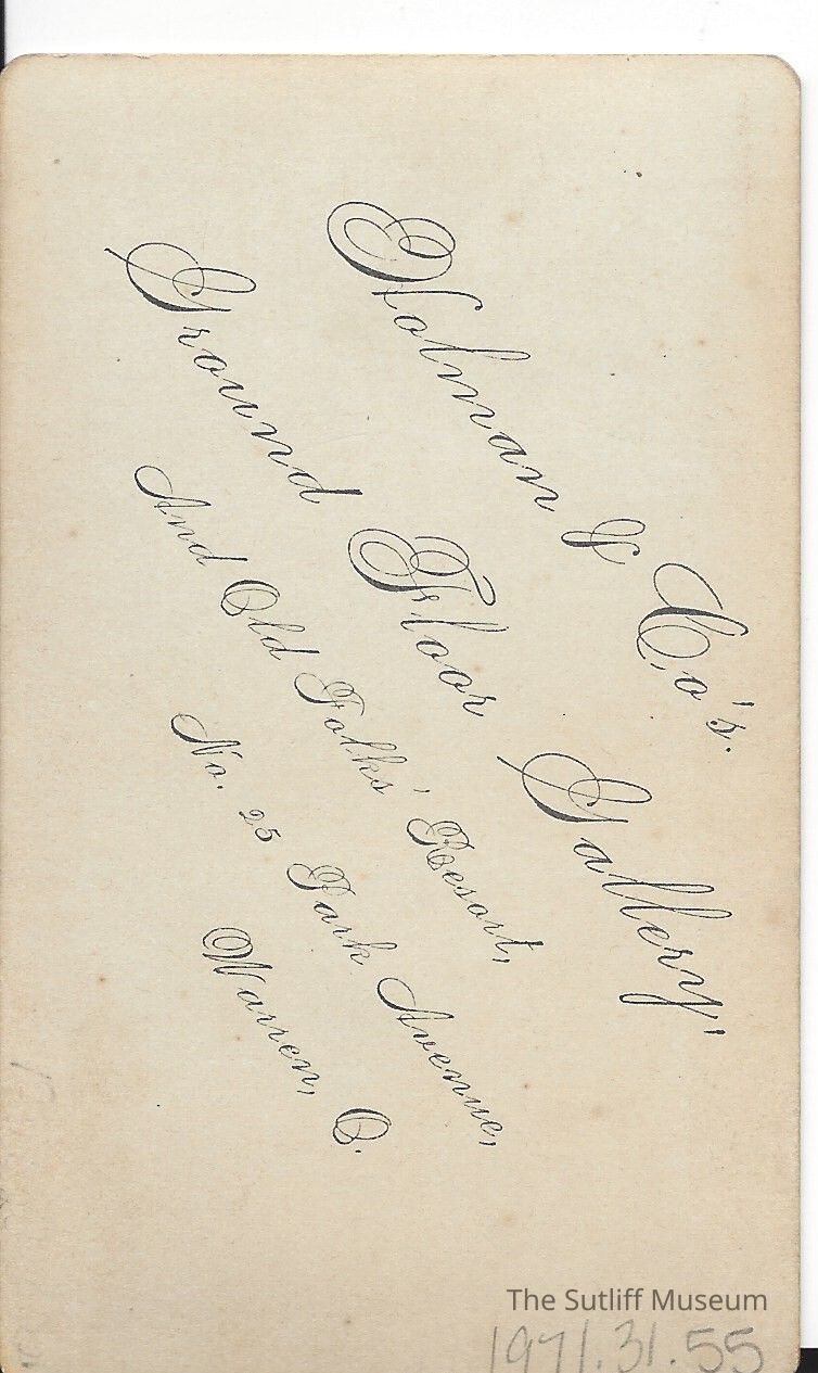 Photograph of Lydia Sutliff by Holman & Co's. Ground Floor Gallery, and Old Folks' Resort, No. 25 Park Avenue, Warren, O.