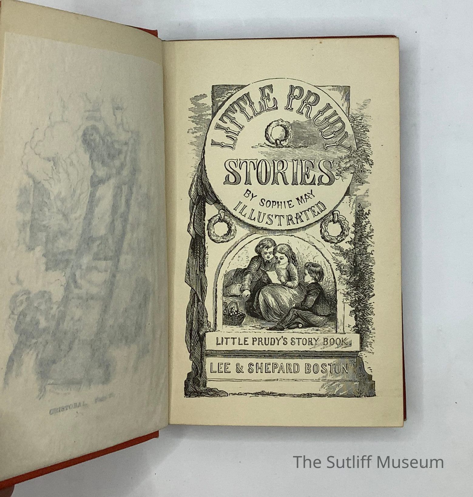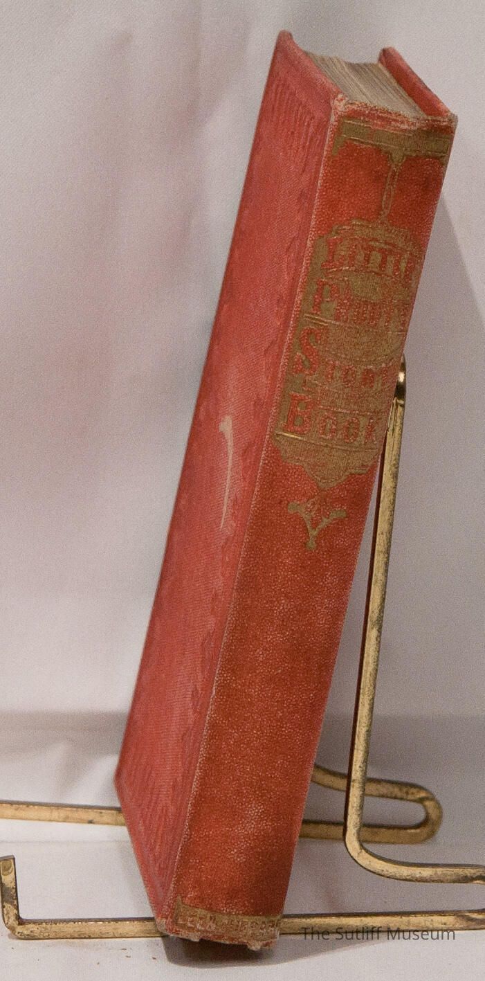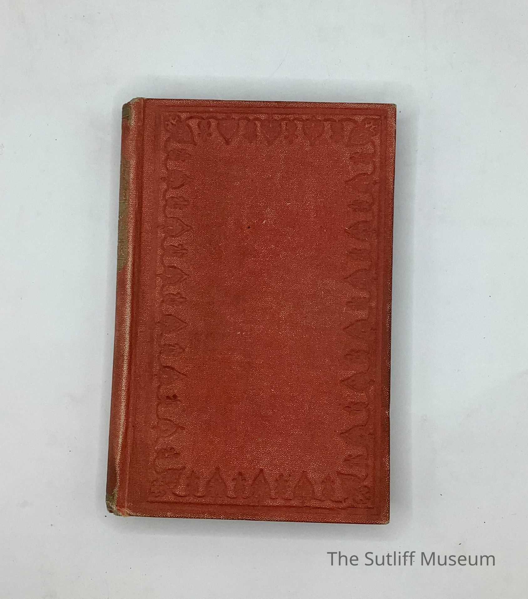 Red cloth with blind embossed design around front and rear covers. Gold embossed title, author information on spine.Collection
