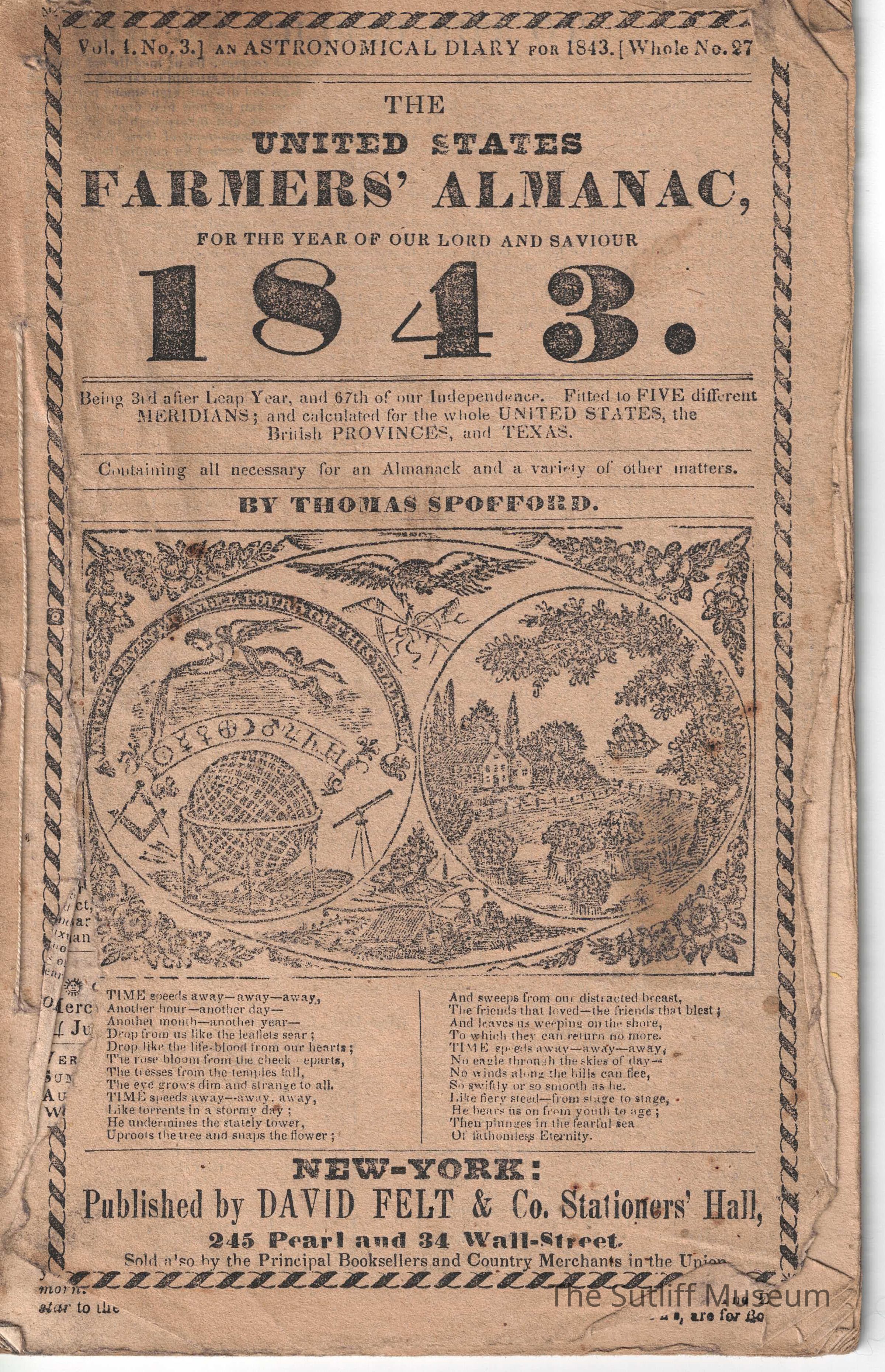 A copy of the 1843 Farmers' Almanac by Thomas Spofford.Collection